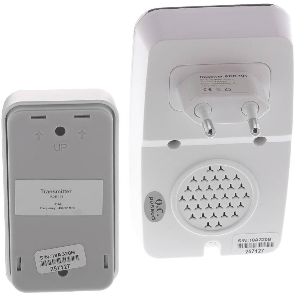 Domový bezdrôtový zvonček s prijímačom. Napájanie prijímača 230V a bezdrôtovým tlačidlom, ktoré pracuje úplne bez batérií. Tlačidlo s triedou ochrany IP44 má dosah až 150 metrov, (vo voľnom priestranstve). Prijímač umožňuje výber z 51 melódií a svetelnú signalizáciu zvonenia. Je možné spárovať až 10 tlačidiel s jednou jednotkou.