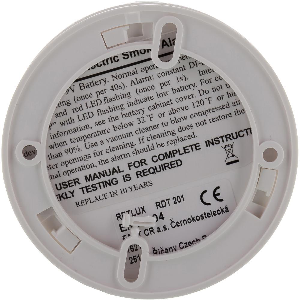 Detektor dymu: akonáhle sa k senzoru dostane dym, detektor spustí poplach. Môže sa použiť aj ako samostatný detektor bez nutnosti pripojenia k alarmom. Senzor je napájaný batériou 6F22 9V. Senzor Vas upozorní ak je slabá batéria. Montáž: Dymový hlásič sa montuje na stred miestnosti na strop alebo do vzdialenosti minimálne 1 meter od steny. Prichytenie sa vykonáva priskrutkovaním rýchloupínacej pätice na podklad.