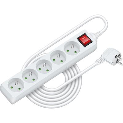 Predlžovací prívod s vypínačom, 5 zásuviek, dĺžka 5 m