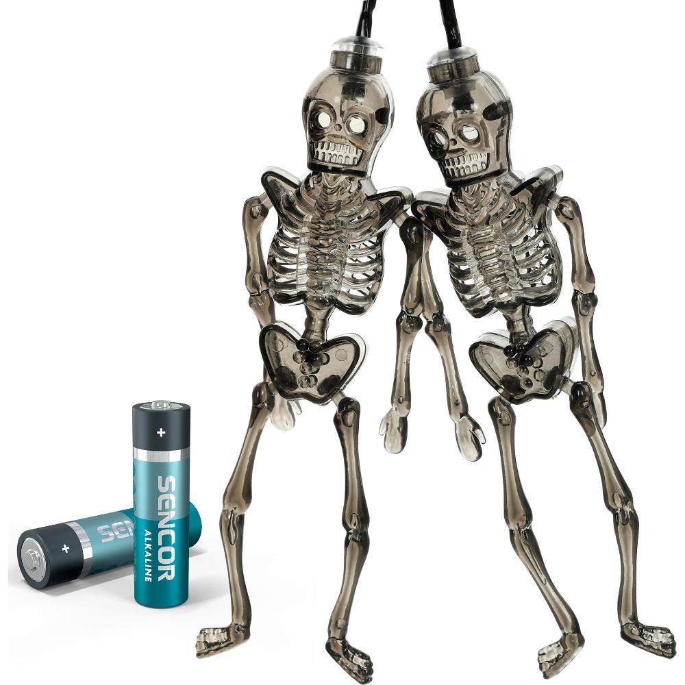 Girlanda s kostlivcami, 10 LED, teplá biela, dĺžka osvetlenej časti 1,35 m, napájanie 2x AA, IP20, farba čierna