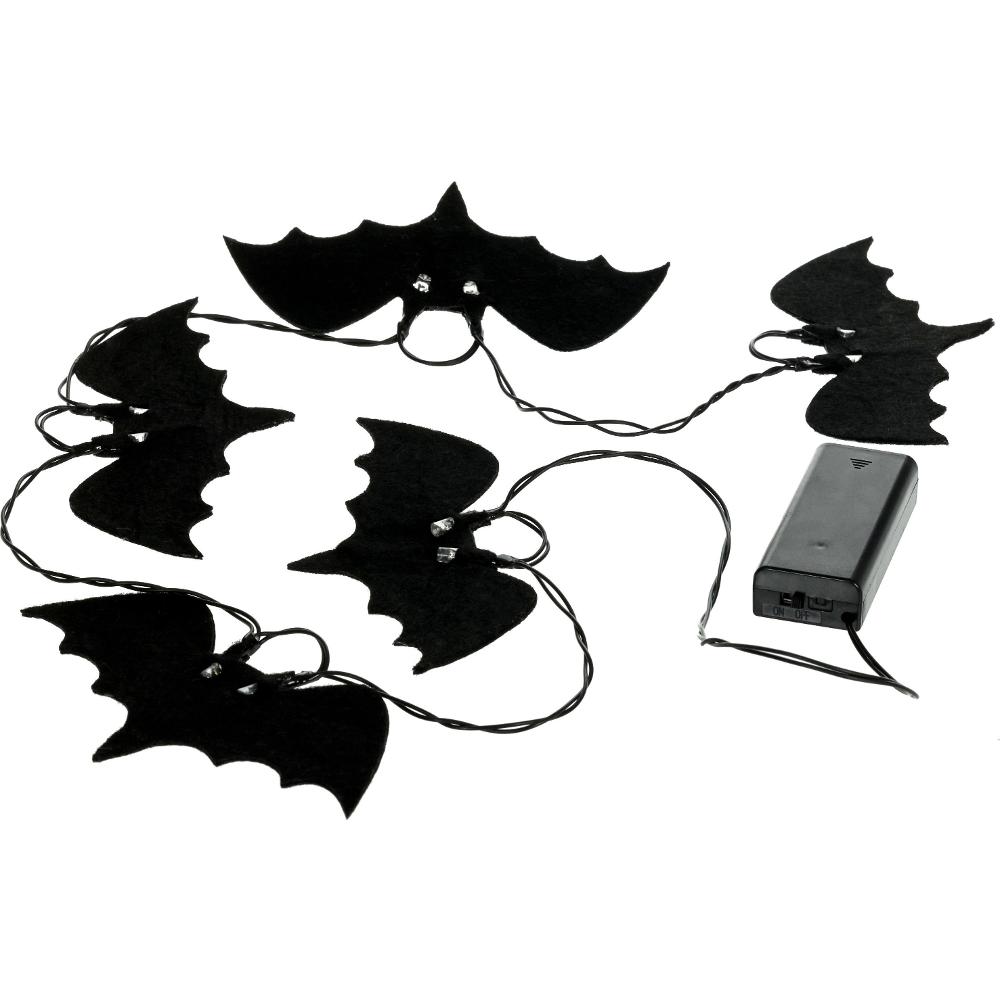 Girlanda s netopiermi, 10 LED, teplá biela, dĺžka osvetlenej časti 1 m, napájanie 2x AA, IP20, farba čierna