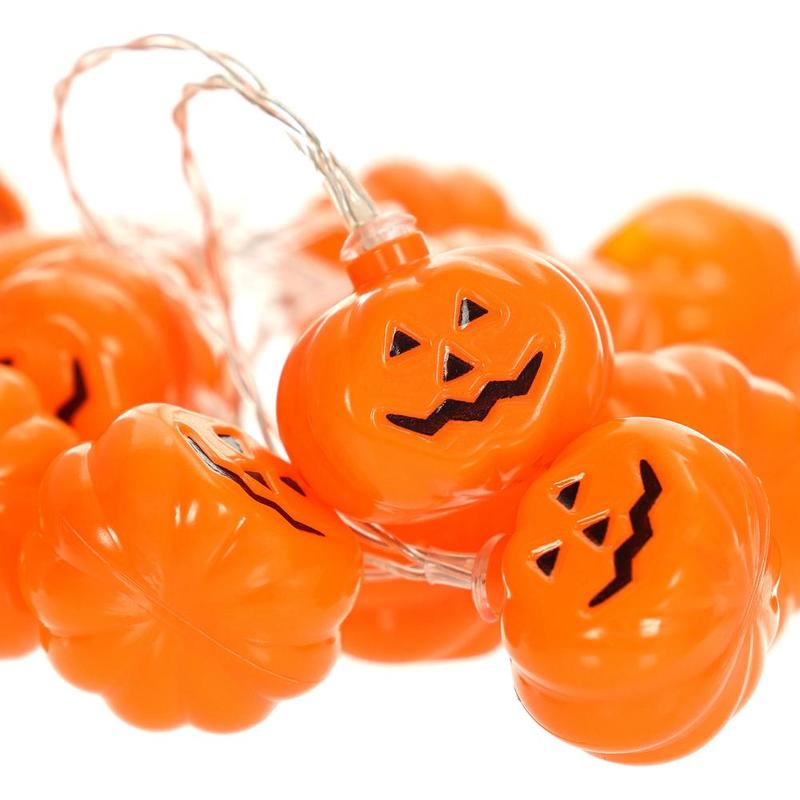 Girlanda s tekvicami, 20 LED, teplá biela, dĺžka osvetlenej časti 3 m, napájanie 3x AA, IP20, farba oranžová