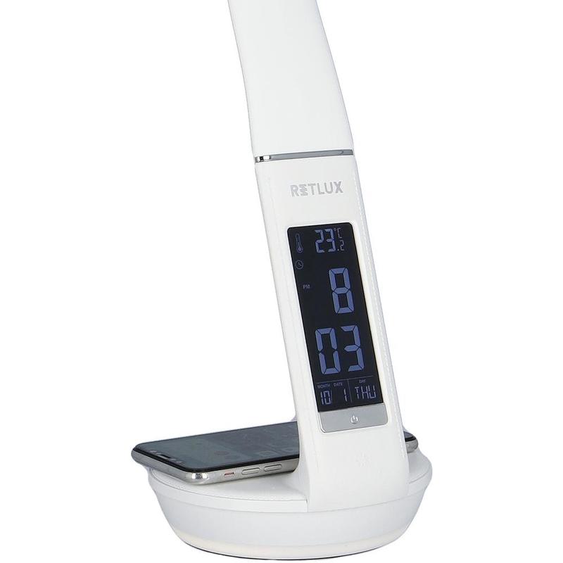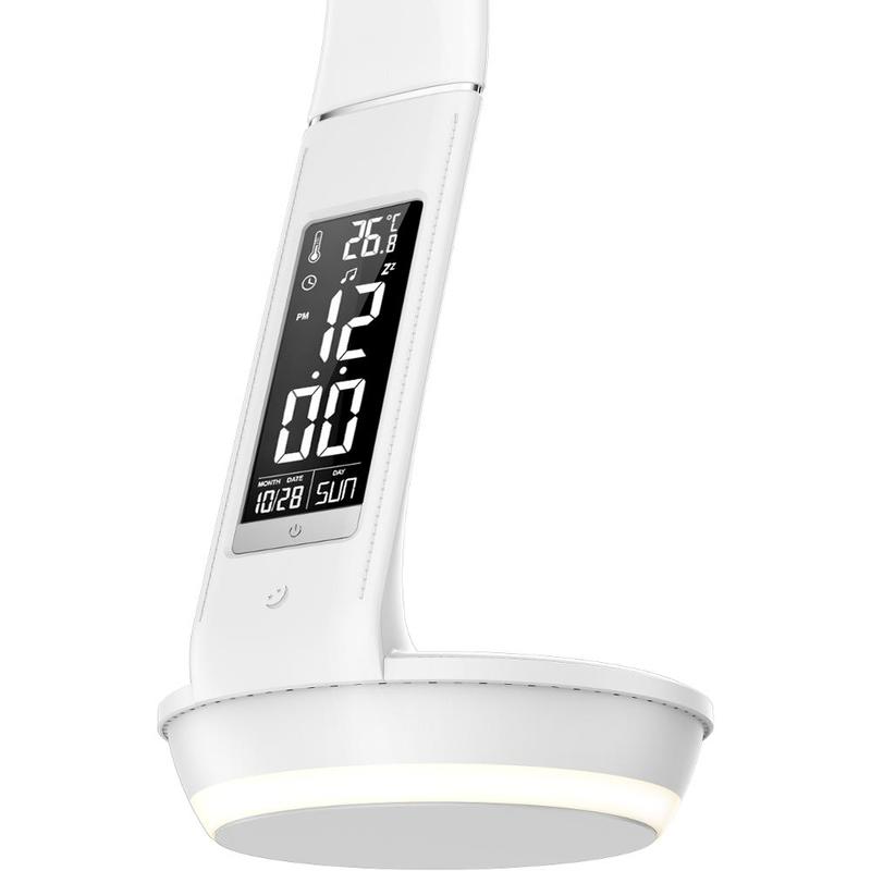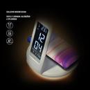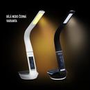 LED stolná lampička s ambientným podsvietením, hodinami, kalendárom, teplomerom, bezdrôtovým nabíjaním Qi a USB výstupom.