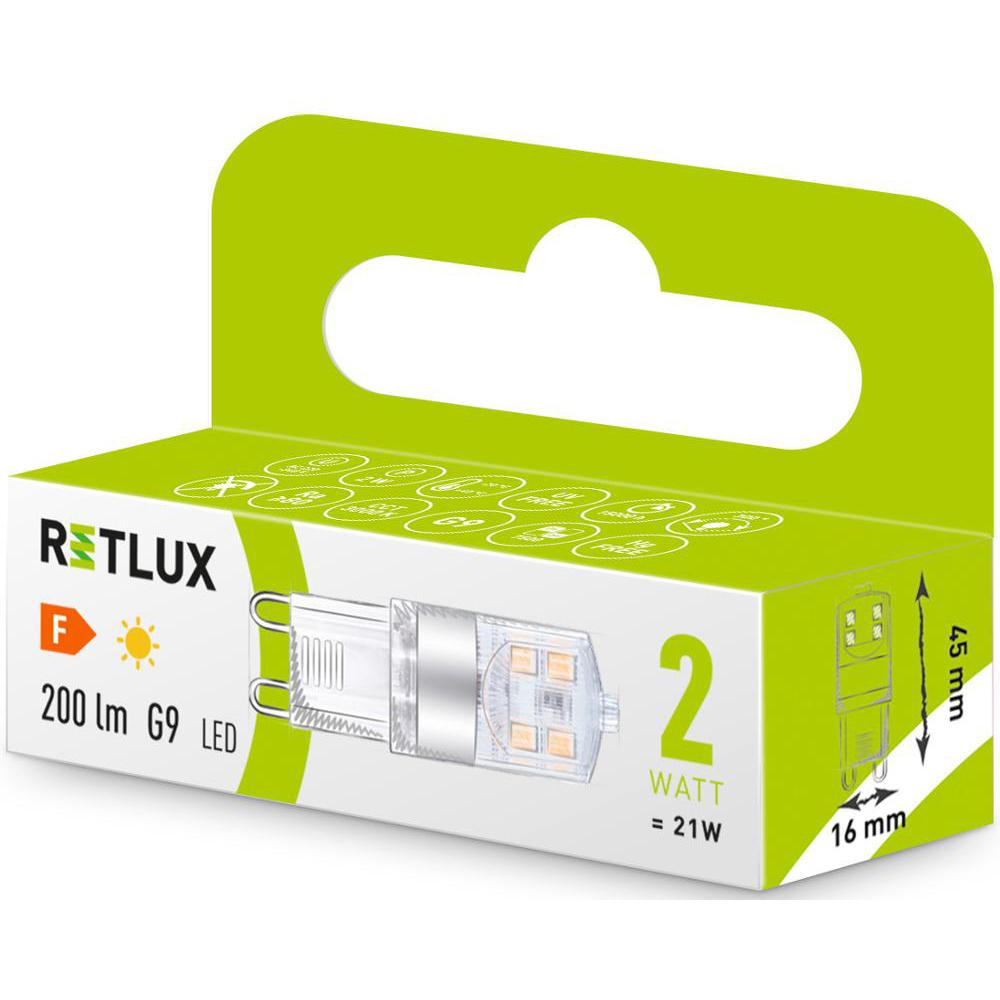 LED žiarovka • Príkon: 2 W • Patica G9 • 230V • 3000K - teplá biela • Životnosť viac ako 15 000h • Svetelný tok: 200 lm• 2 W = 21 W (pri klasickej žiarovke) • Rozmery: 16x6x45mm (dxšxh)