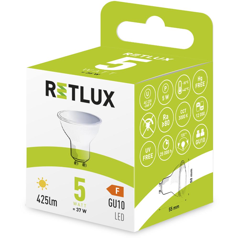 Reflektorové LED žiarovky Retlux do pätice GU10 sa používajú najčastejšie v podhľadoch, bodových svetlách či v kúpeľniach. Jedná sa o menšie žiarovky, ktoré spoľahlivo osvietia menšiu plochu či vo väčšom množstve aj rozmernejšiu miestnosť. Na výber máte hneď niekoľko variantov od 5 W do 9 W, čo by pri bežných žiarovkách znamenalo 37 W až 61 W.