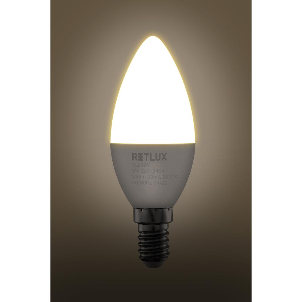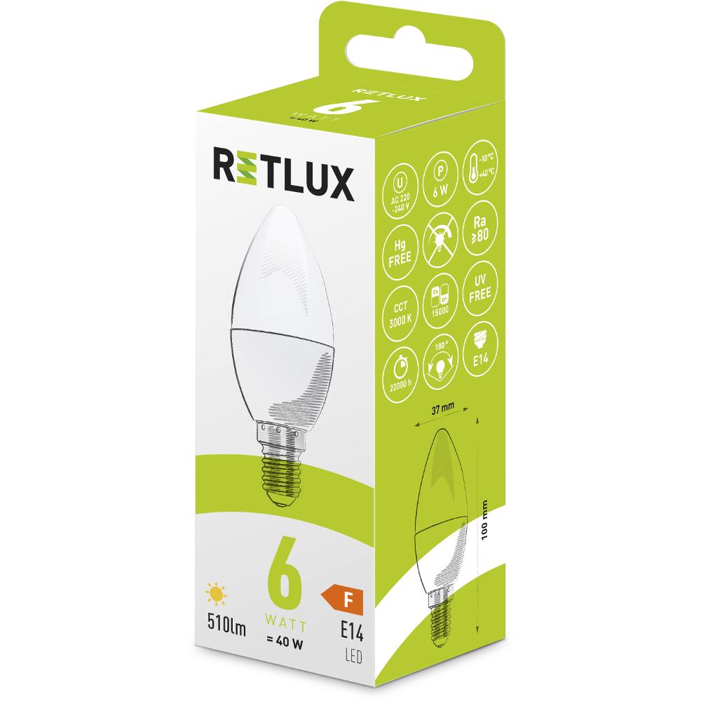 Žiarovky v tvare sviečok nájdu dozaista uplatnenie v ozdobných lustroch, závesných svietidlách či napr. v lampách. Tento už rokmi osvedčený tvar sa však dočkal technologického pokroku. Retlux LED žiarovky do pätice E14 majú násobne menšiu spotrebu ako jej predchodkyne, a vynikajú rovnako vysokou životnosťou, ktorá sa pohybuje v radoch desiatok tisíc hodín.