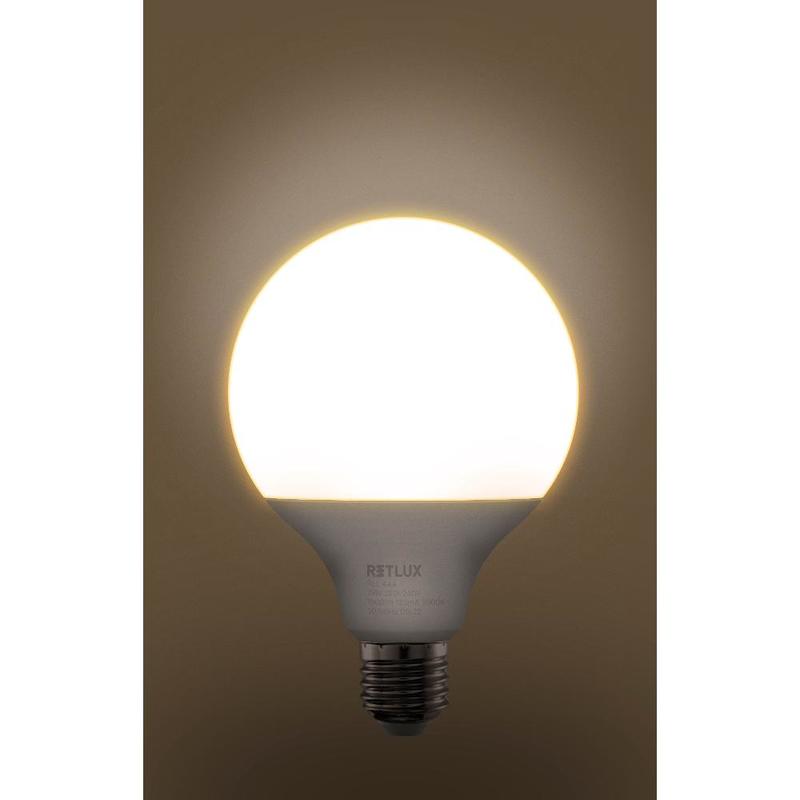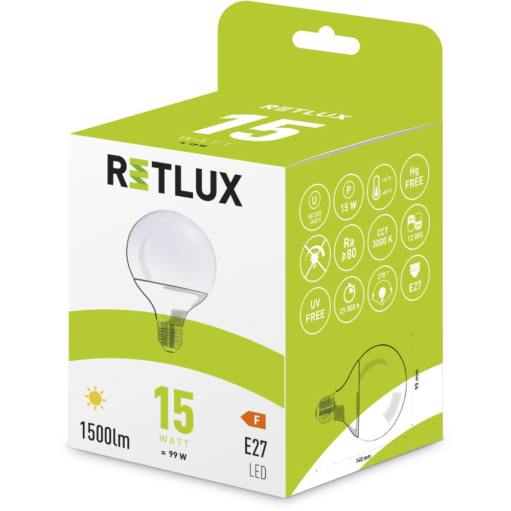 Veľké žiarovky, ktorý vynikajú vysokou svietivosťou. Rad Retlux Big Globe obsahuje veľmi výkonné žiarovky, ktoré majú svetelný tok presahujúci bežné LED žiarovky. Zároveň si však zachovávajú nízku spotrebu a príjemné teplotné spektrum farieb. Big Globe je možné osadiť do bežných pätíc E27.