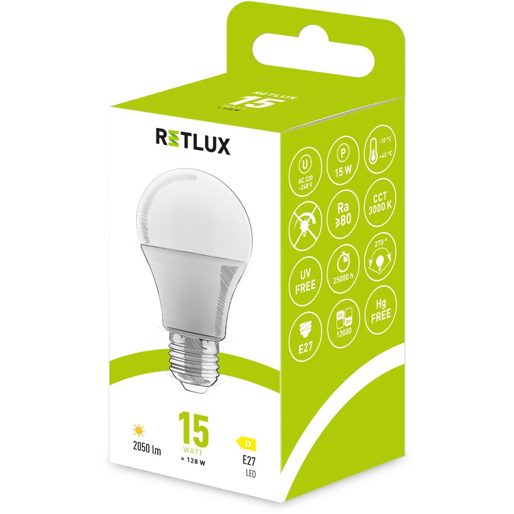 LED žiarovka, Klasický tvar 15W, Patica E27, 3000K - teplá biela, Populárna náhrada za vláknovú žiarovku 100W, energetická trieda D, 220-240V, Životnosť viac ako 25000h, Svetelný tok: 1550 lm, Rozmery 125*65mm (d*O)