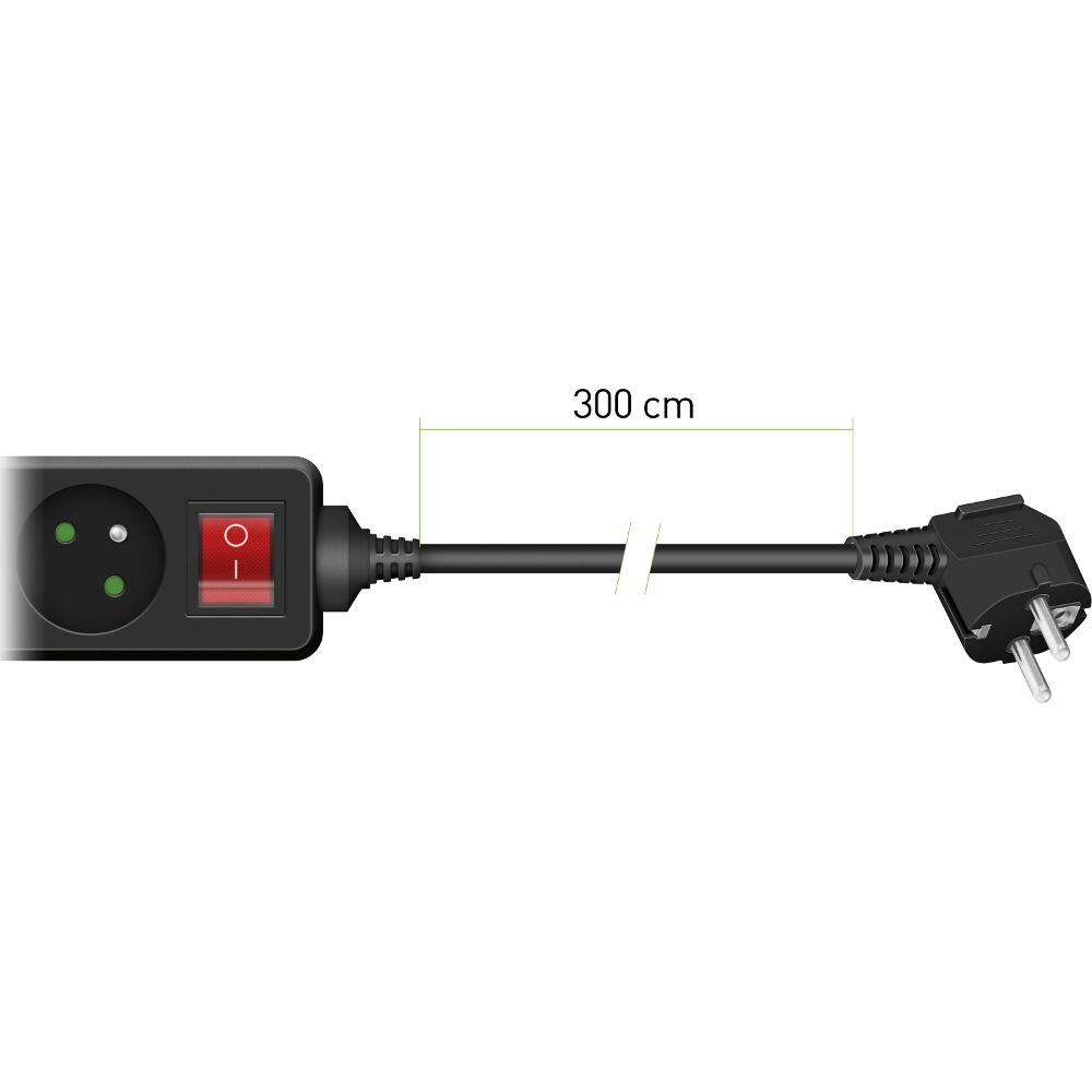 Predlžovací prívod s vypínačom, 3 zásuvky, dĺžka 3 m