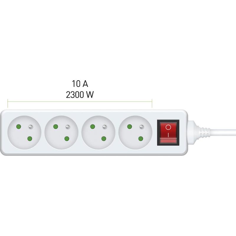 Predlžovací prívod s vypínačom, 4 zásuvky, dĺžka 5 m