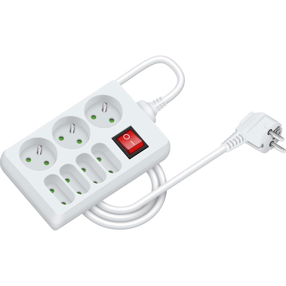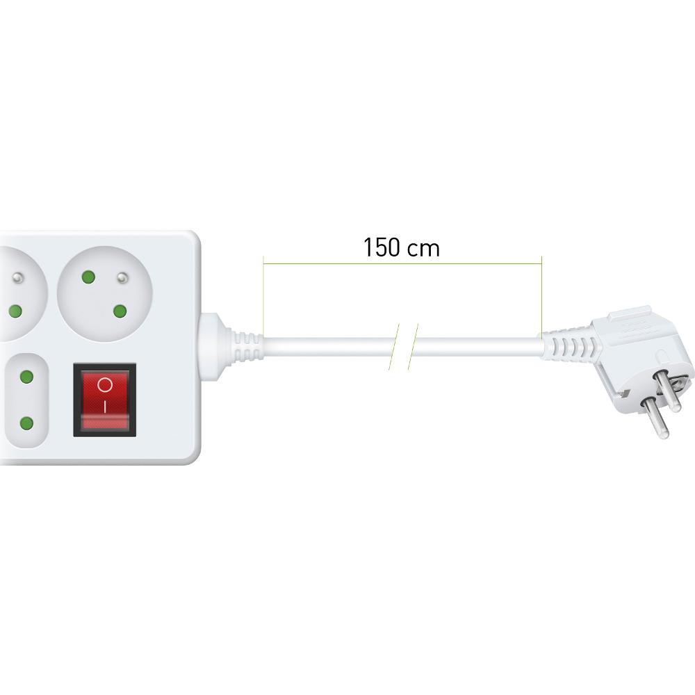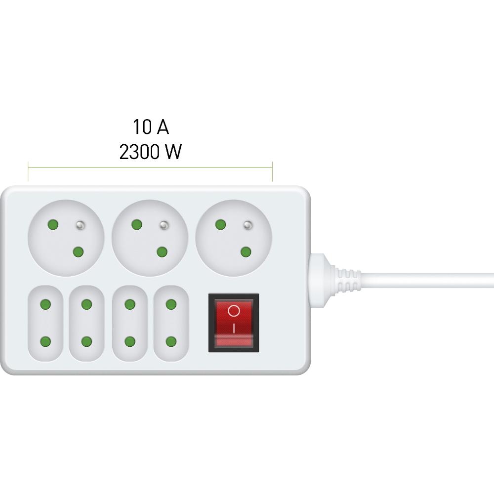 Predlžovací prívod s vypínačom, 4+3 zásuvky, dĺžka 1,5 m