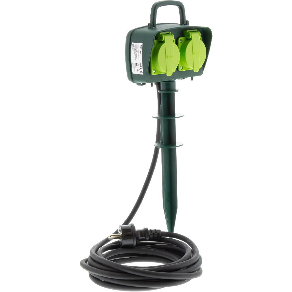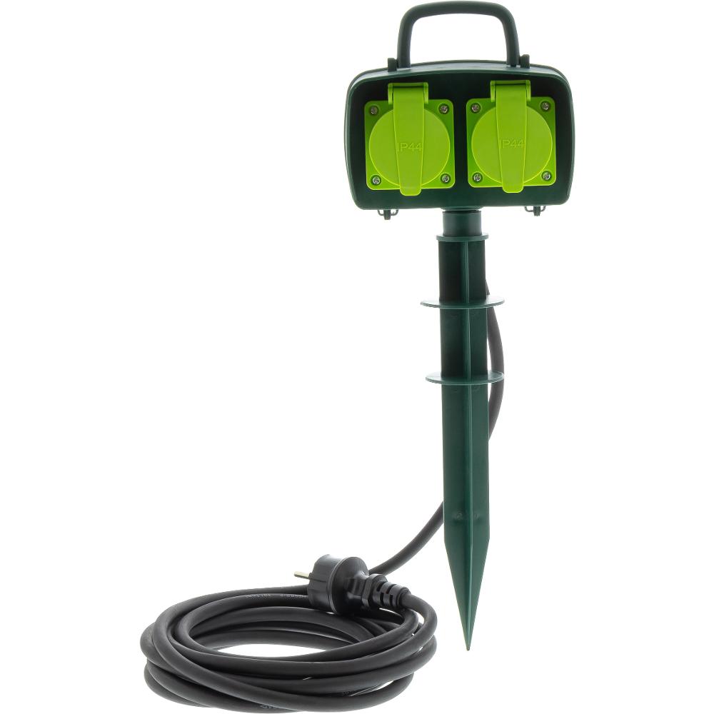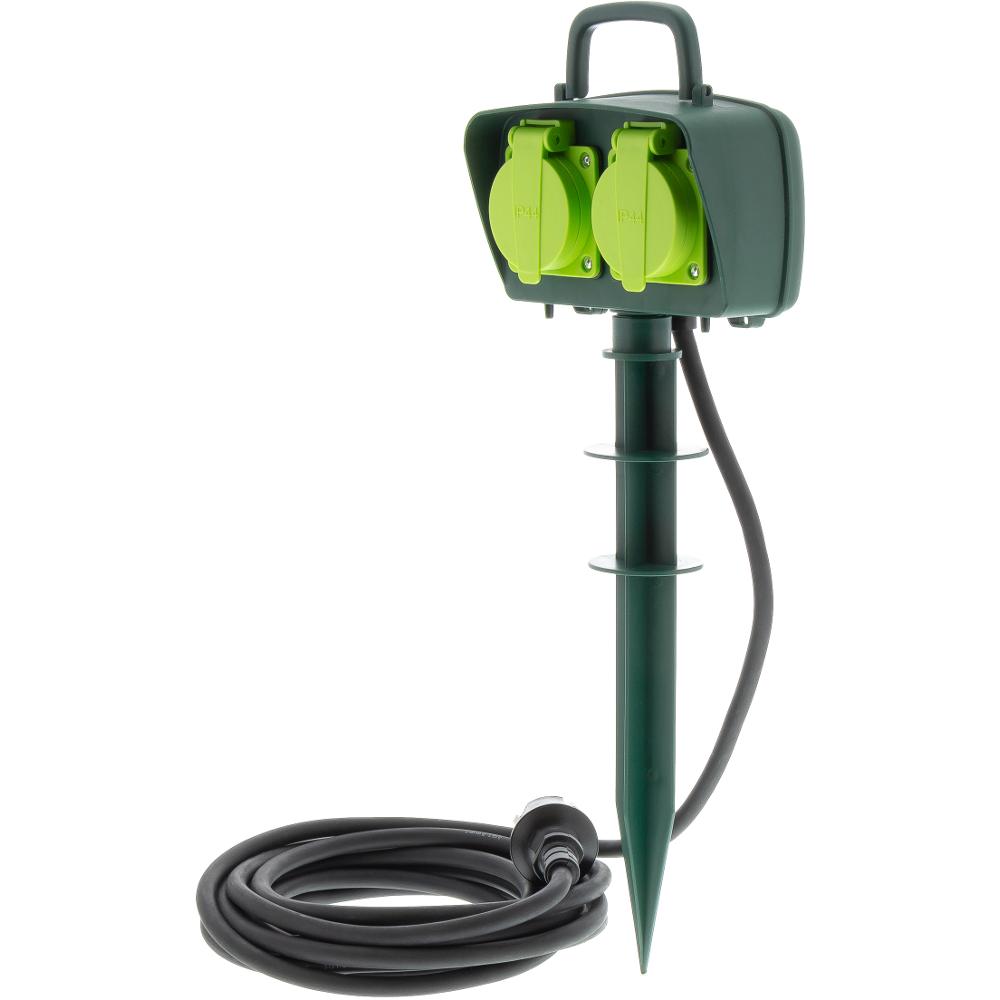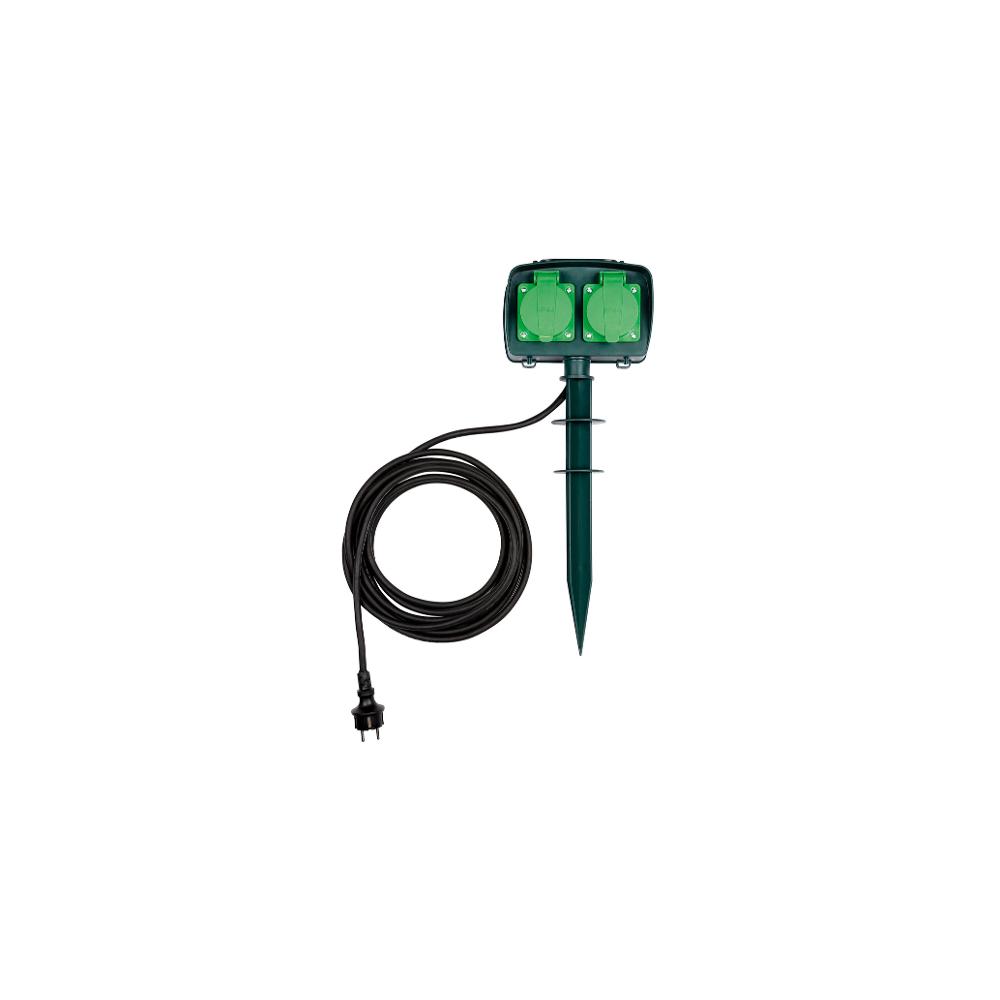 Vonkajšia dvojnásobná zásuvka so zapichovacím plastovým tŕňom pre vonkajšie použitie.
