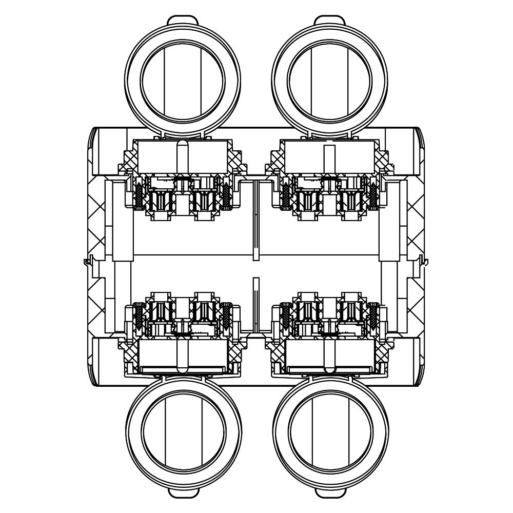 4x 230V ~ 50Hz, 16A / 3680W Max., vratná poistka proti prepätiu,