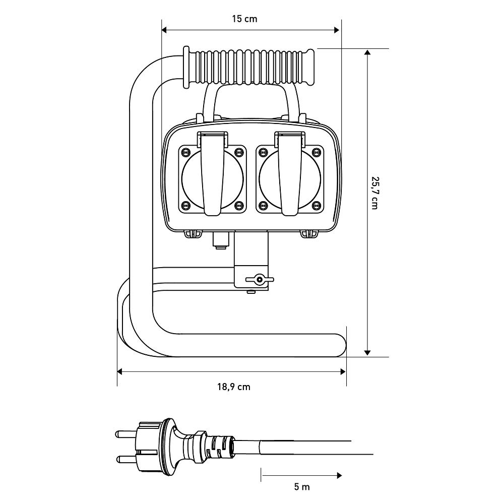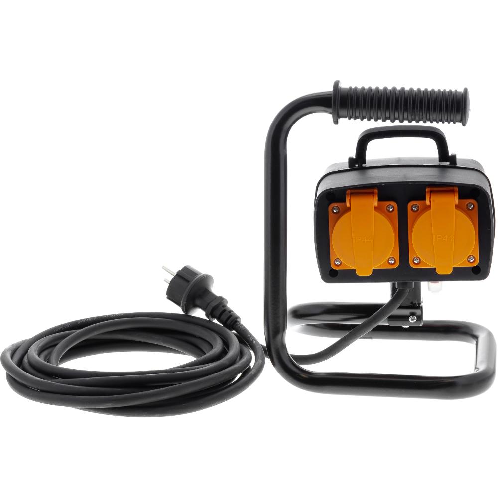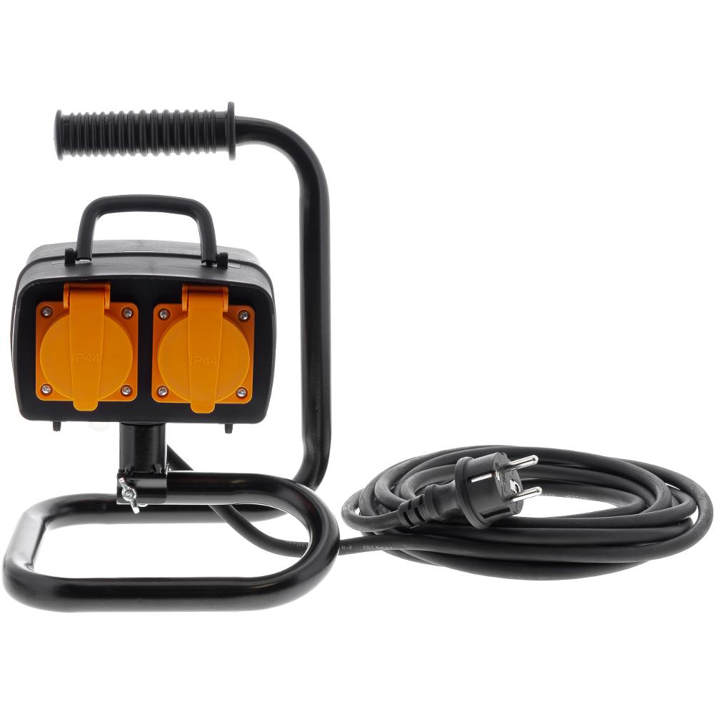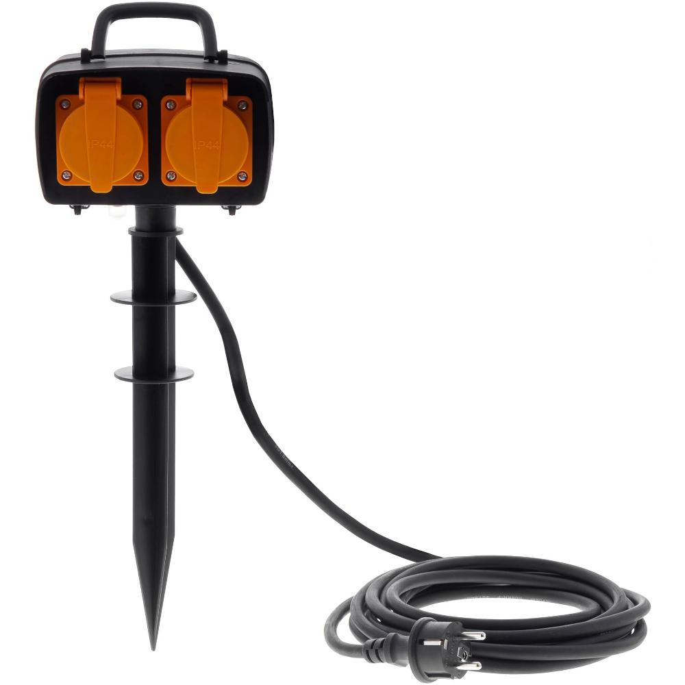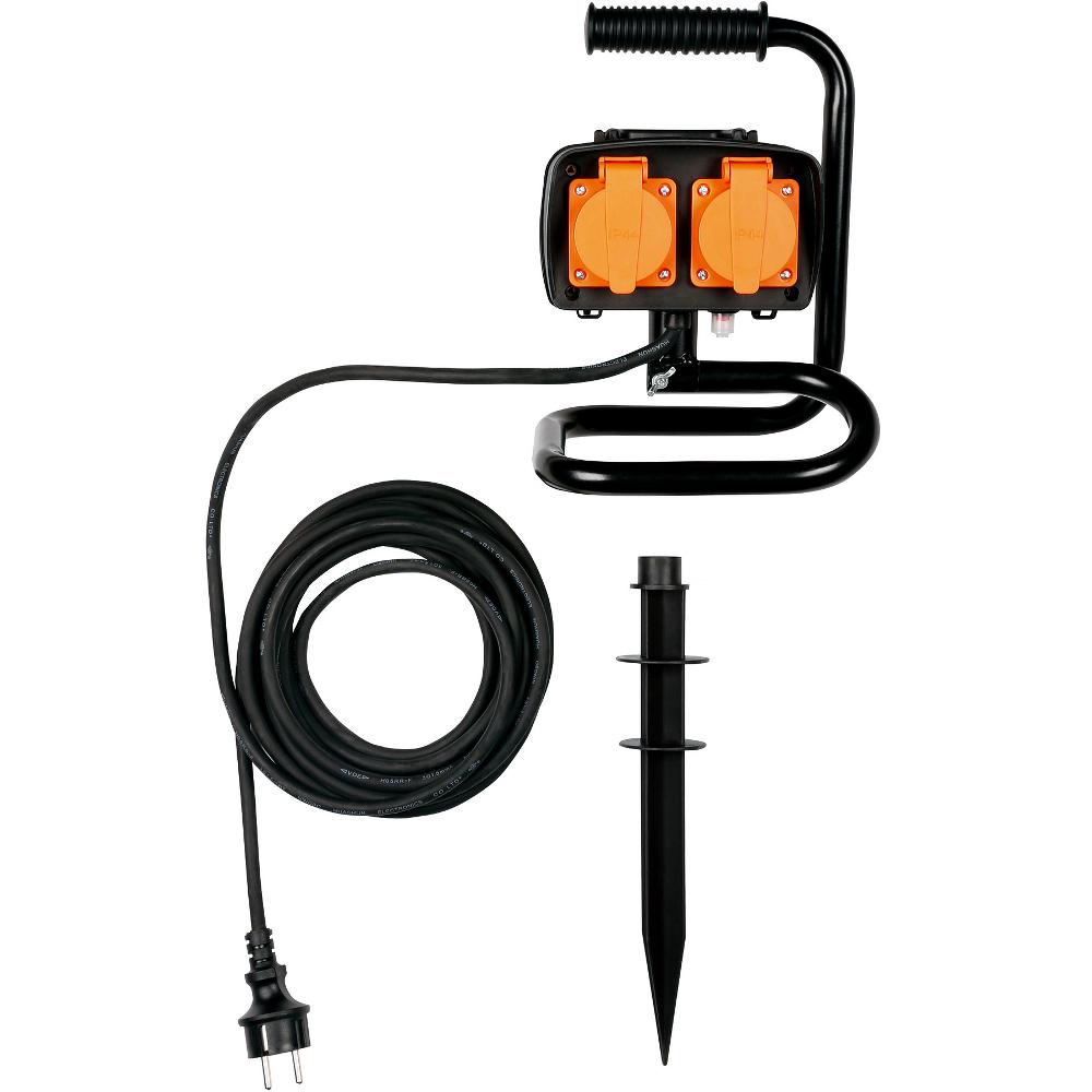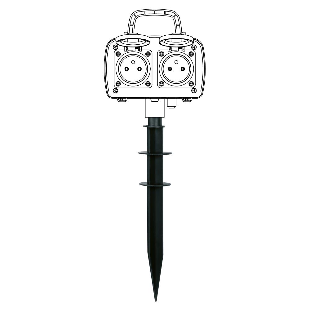 Vonkajšia štvornásobná zásuvka na kovovom stojane a výmenným zapichovacím plastovým tŕňom, IP44, vratná poistka, 3x1,5mm2, max. 16A / 3680W