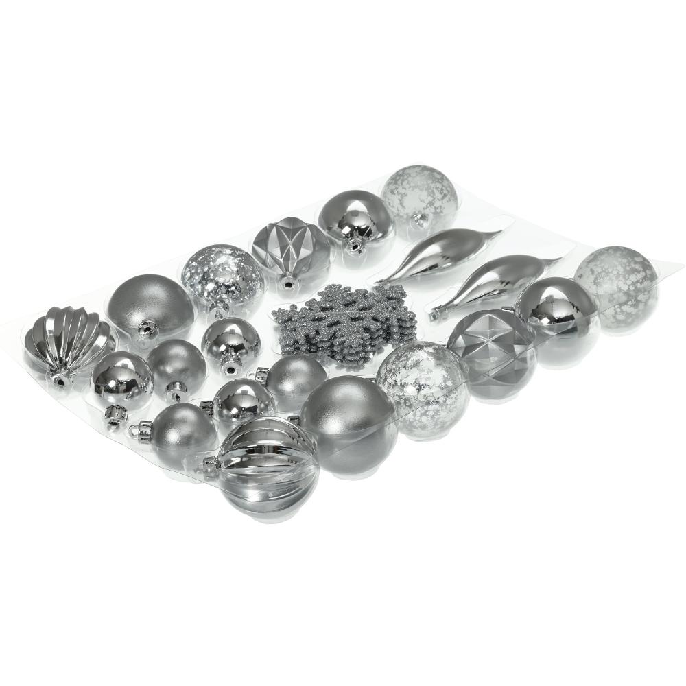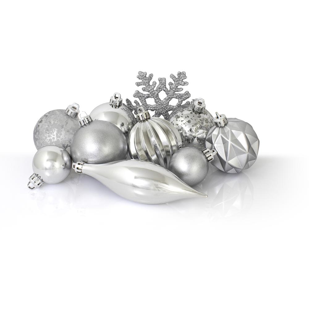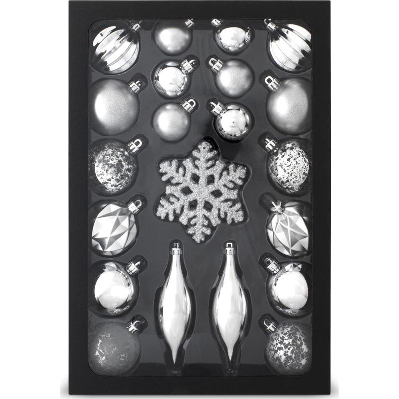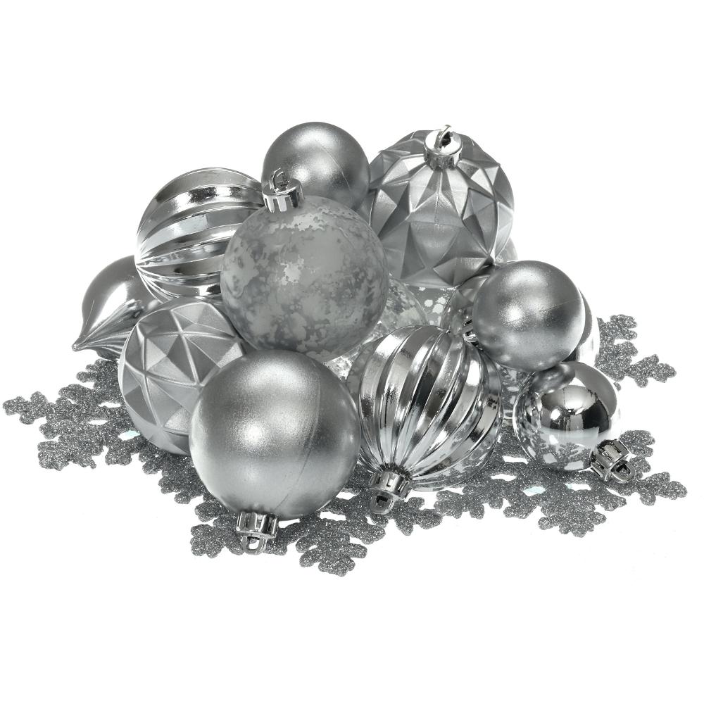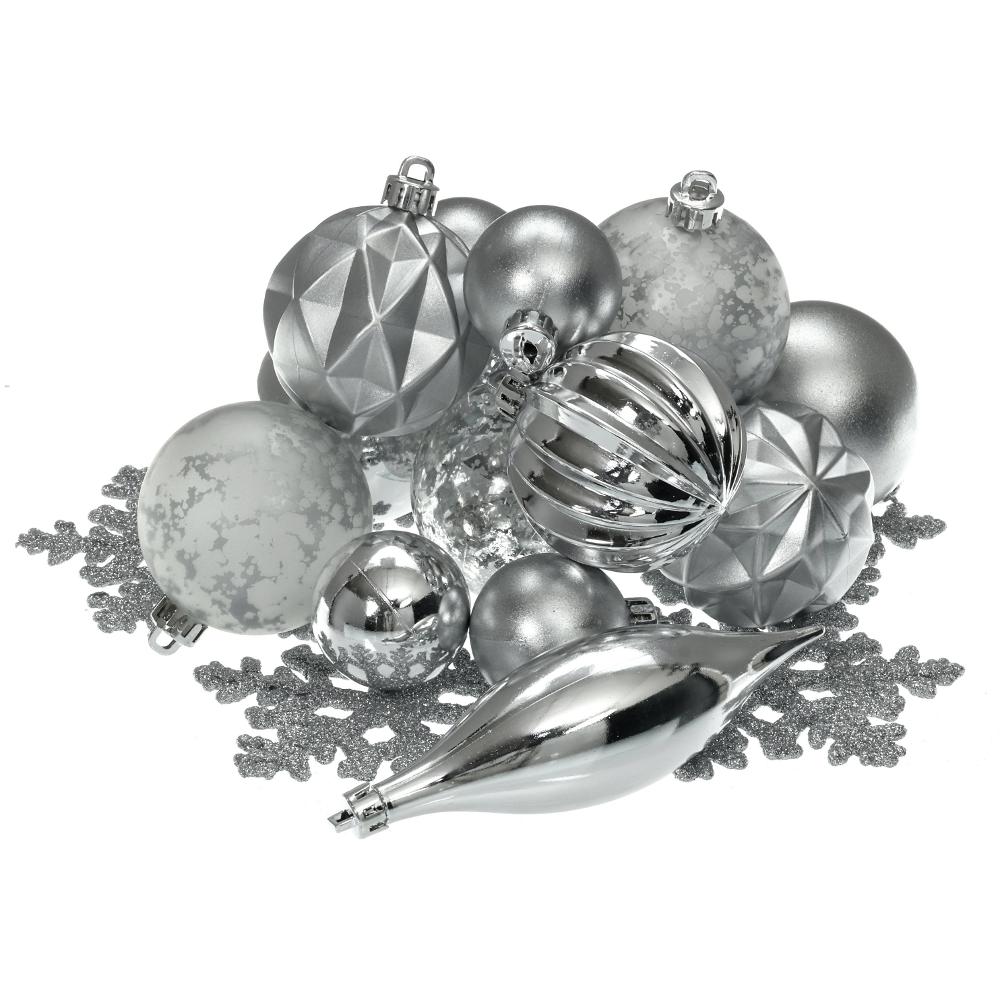 Sada 25 kusov vianočných ozdôb v tradičnej striebrnej farbe
