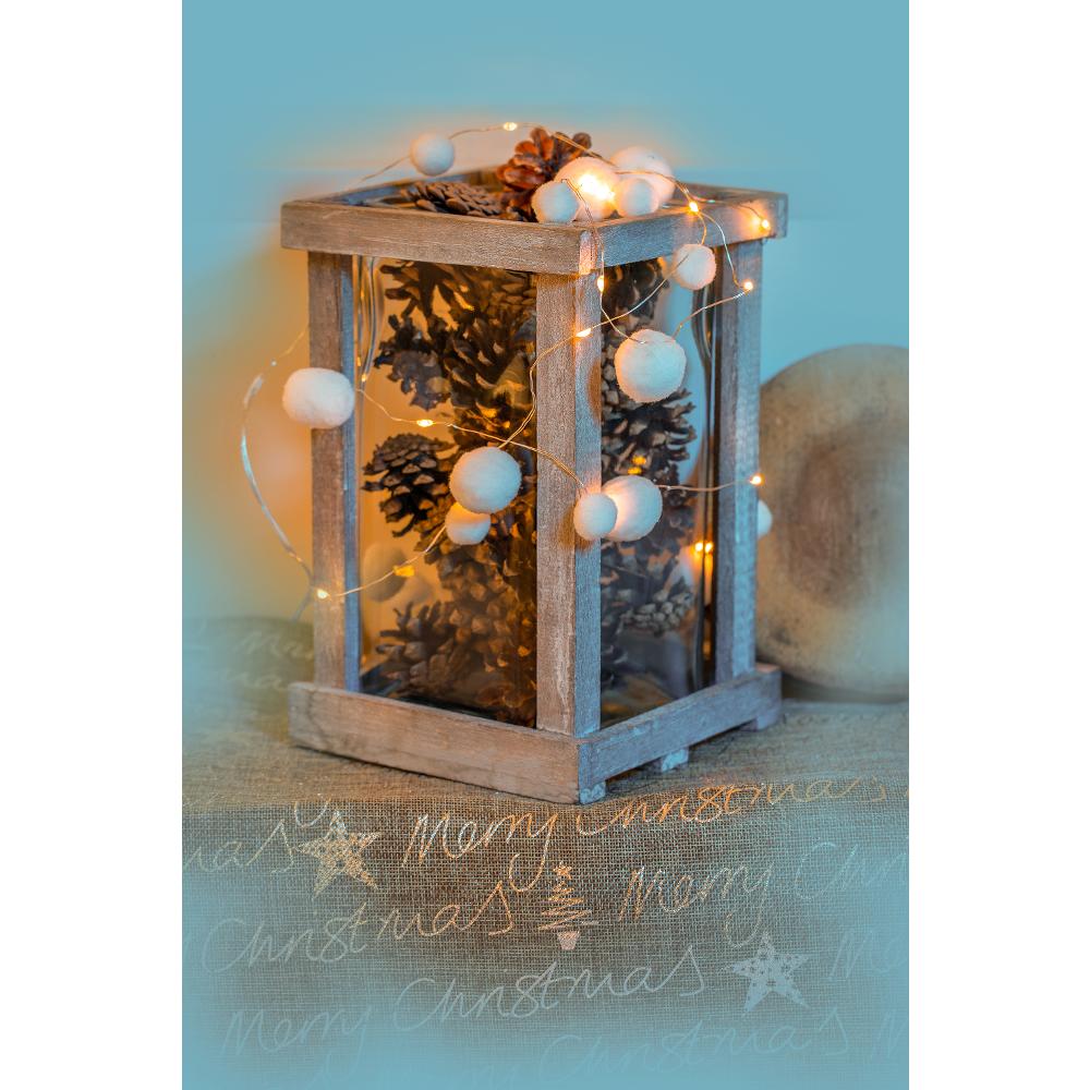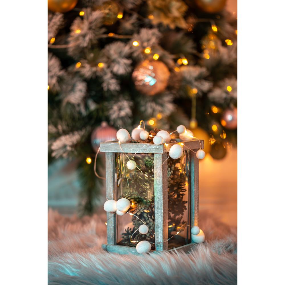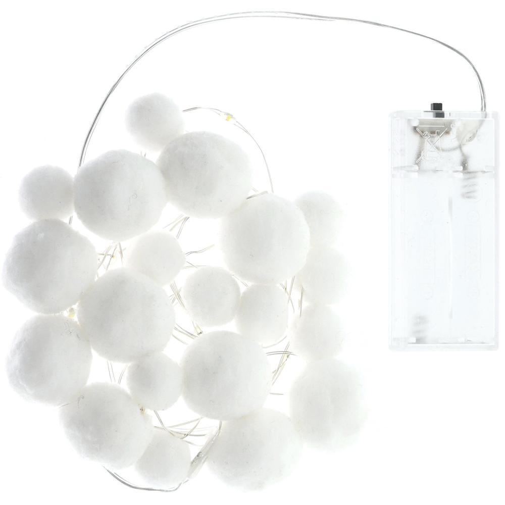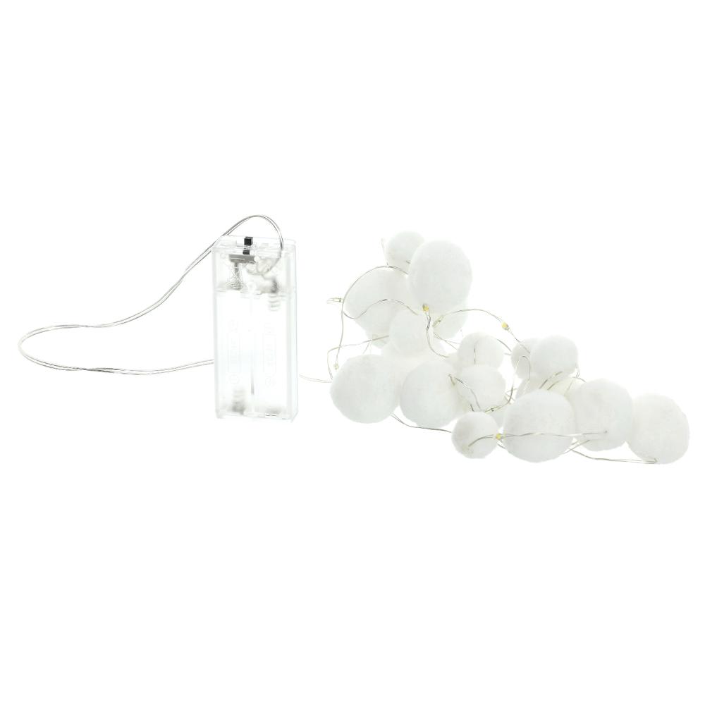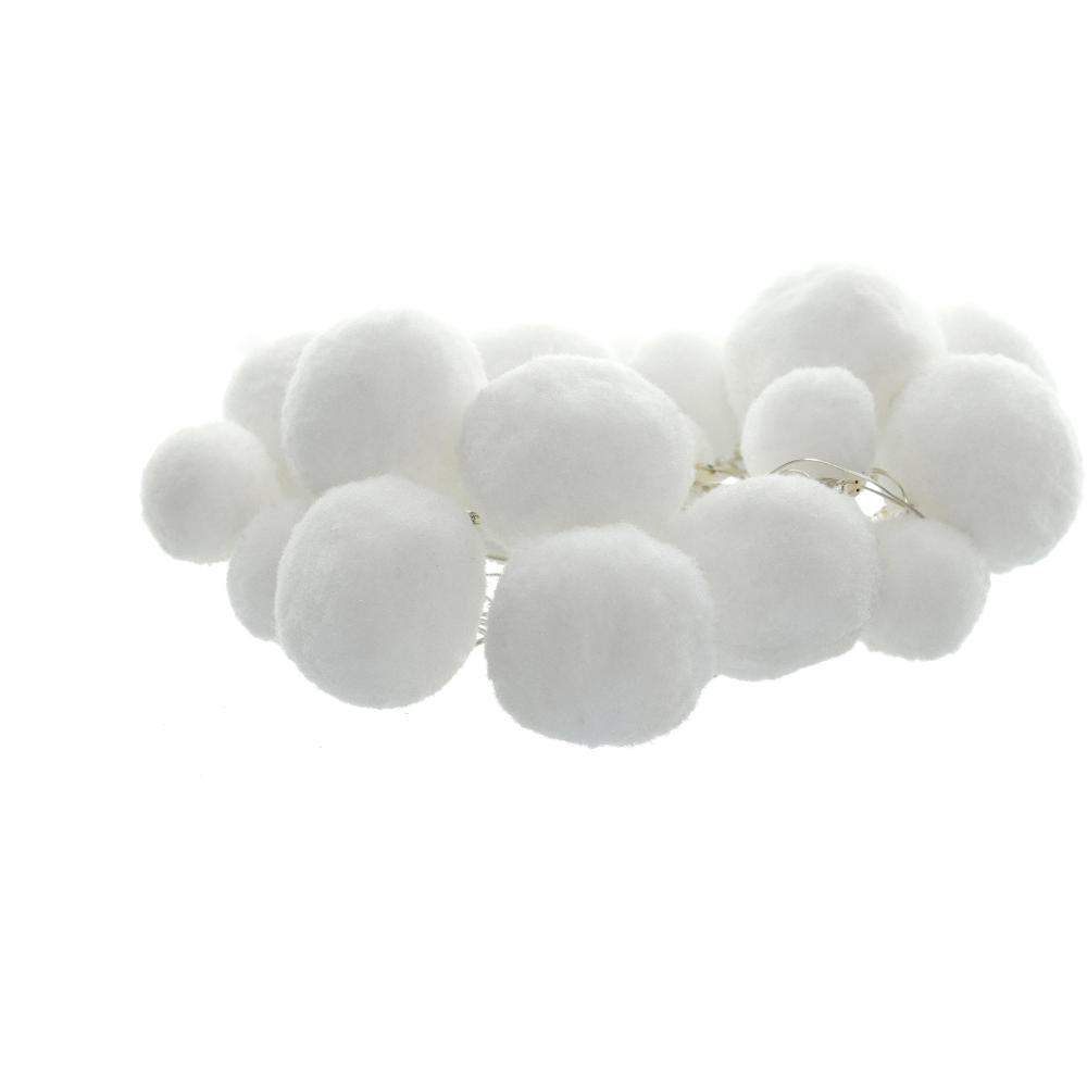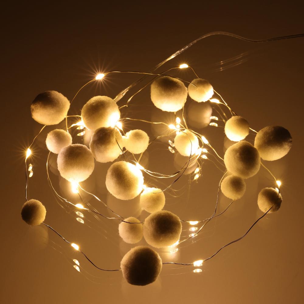 Reťaz pretkaná plyšovými guličkami a ľad svetielkami. Ozdobte si stôl, vetvičky, stromček aj okno. Reťaz s pompomami vám ozvláštni vianočnú atmosféru.