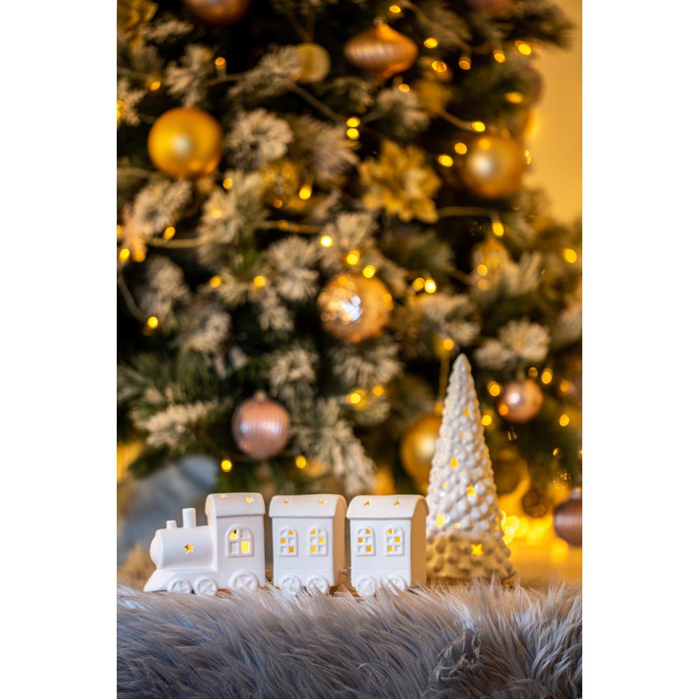 Ak dávate prednosť dekoráciám, pri ktorých môžete pokojne aj zaspať bez obáv, že ste zabudli sfúknuť sviečku, určite vás poteší naša ponuka keramických dekorácií so zabudovaným LED svetielkom. Porcelánová lokomotíva s dvoma vagónikmi presvieti vaše domovy.