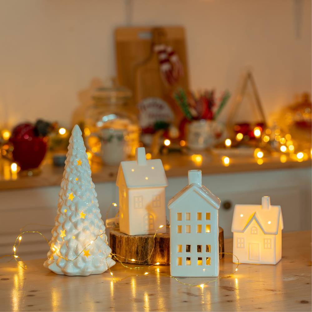 Vytvorte si útulnú dedinku aj u vás doma. A ako? Veľmi jednoducho, využite naše keramické domčeky, ktoré patria medzi najobľúbenejšie vianočné dekorácie. Vložíte do nich čajovú sviečku a okamžite sa z nich stane krásna dekorácia plná teplého svetla.