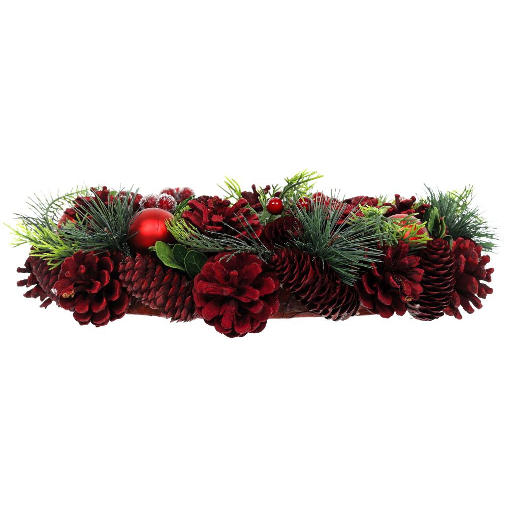 S umelými vetvičkami a červenými kužeľmi