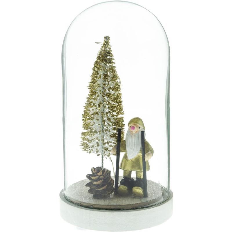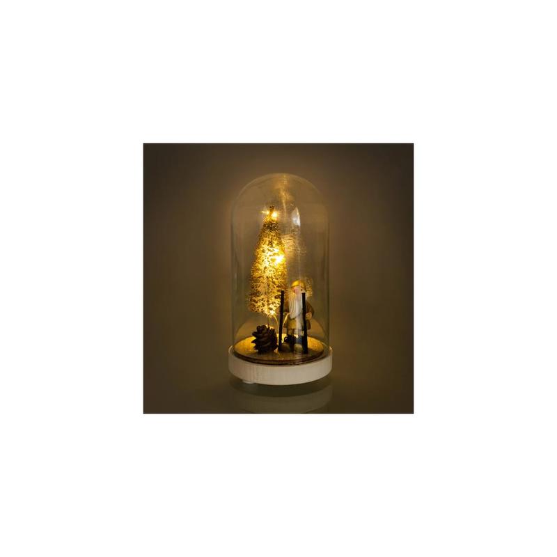 Vianočná sklenená kopulka s dreveným dekorom