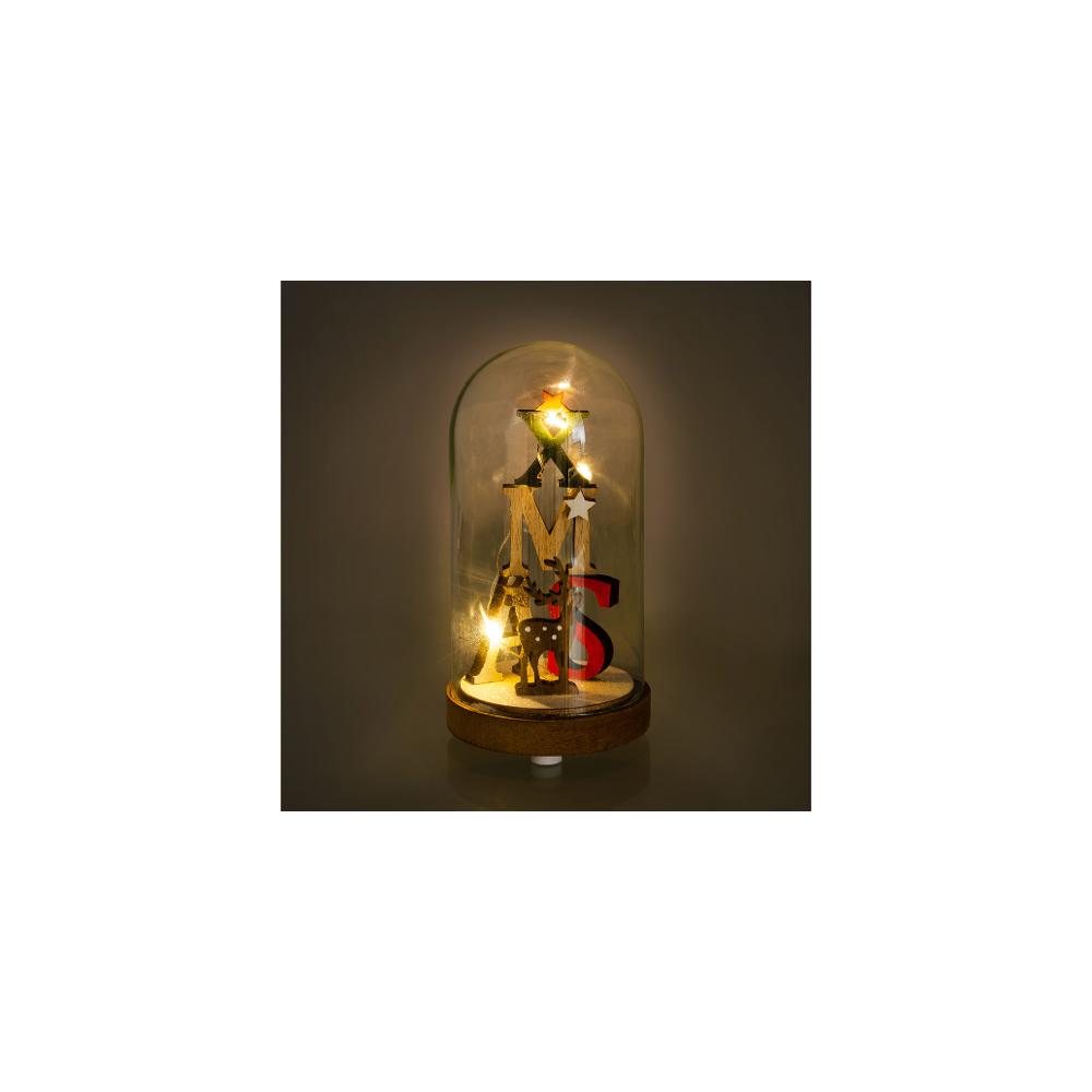 Vianočná sklenená kopulka s dreveným dekorom