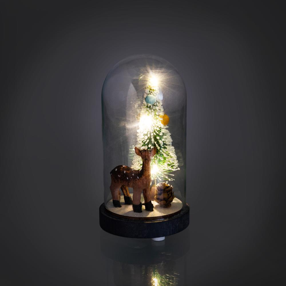 Vianočná sklenená kopulka s dreveným dekorom