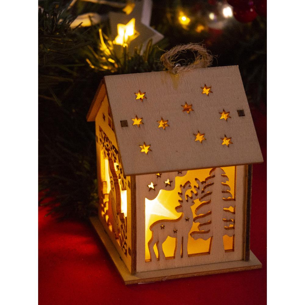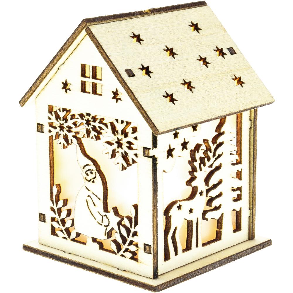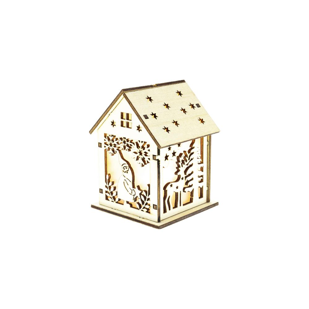 Vianočné dekorácie - domček s jeleňom a škriatkom