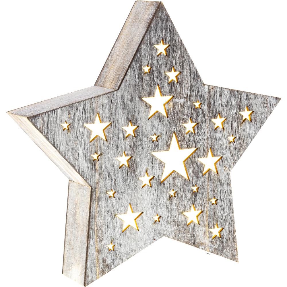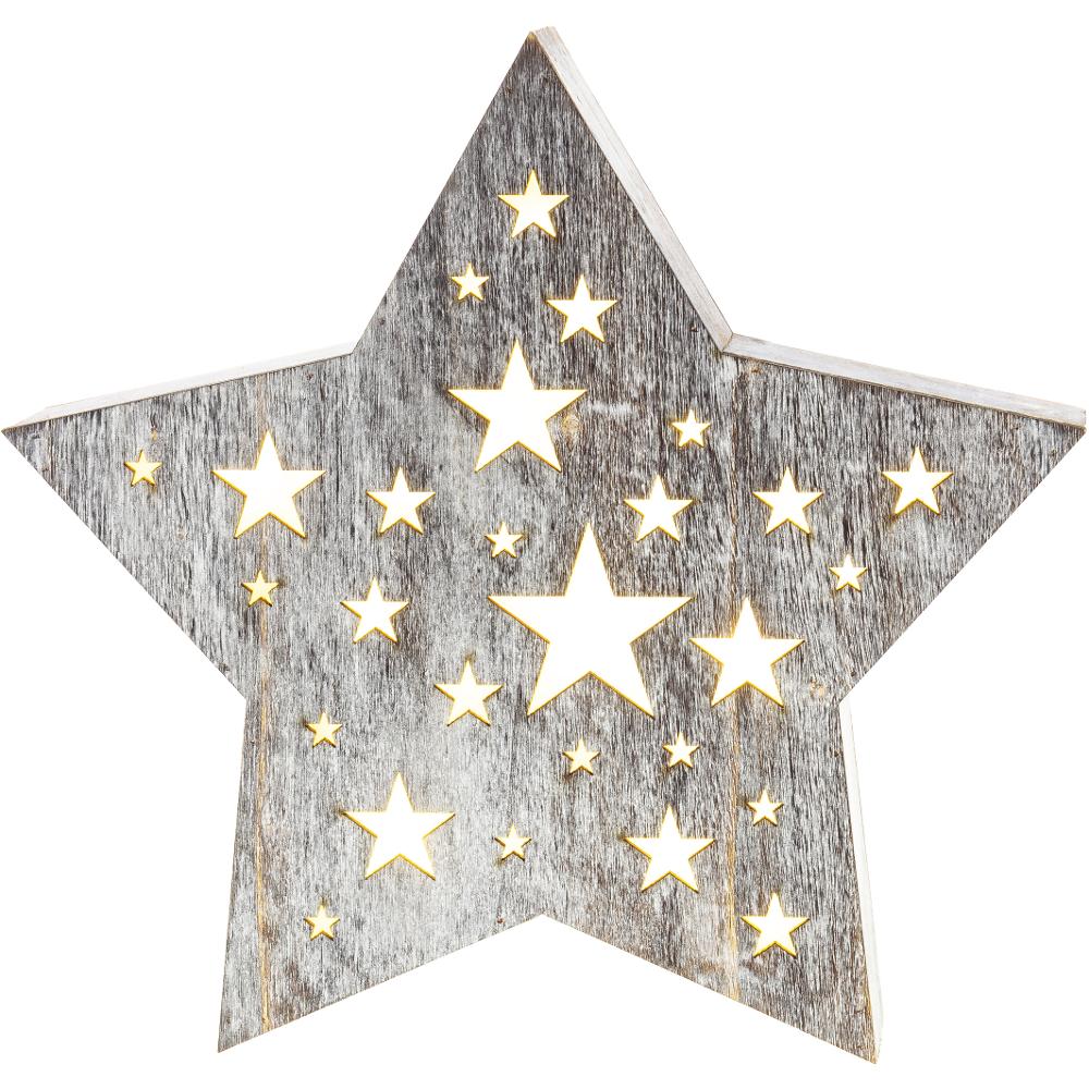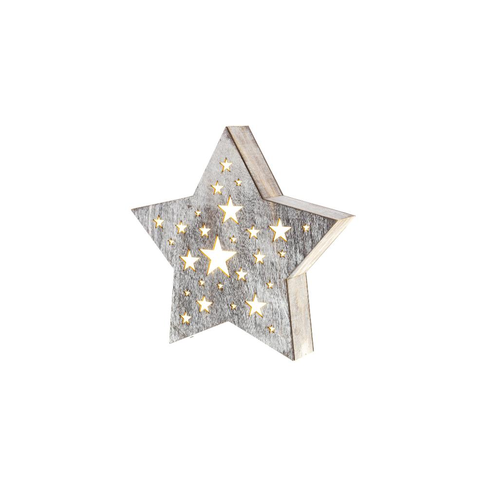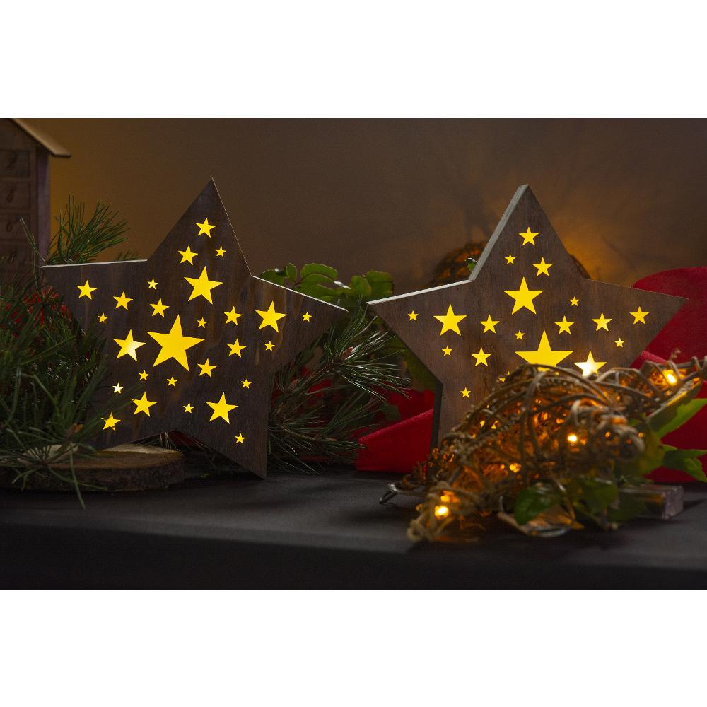 Vianočné dekorácie - hviezda drevená s perforáciou vo stvaru hviezdičiek