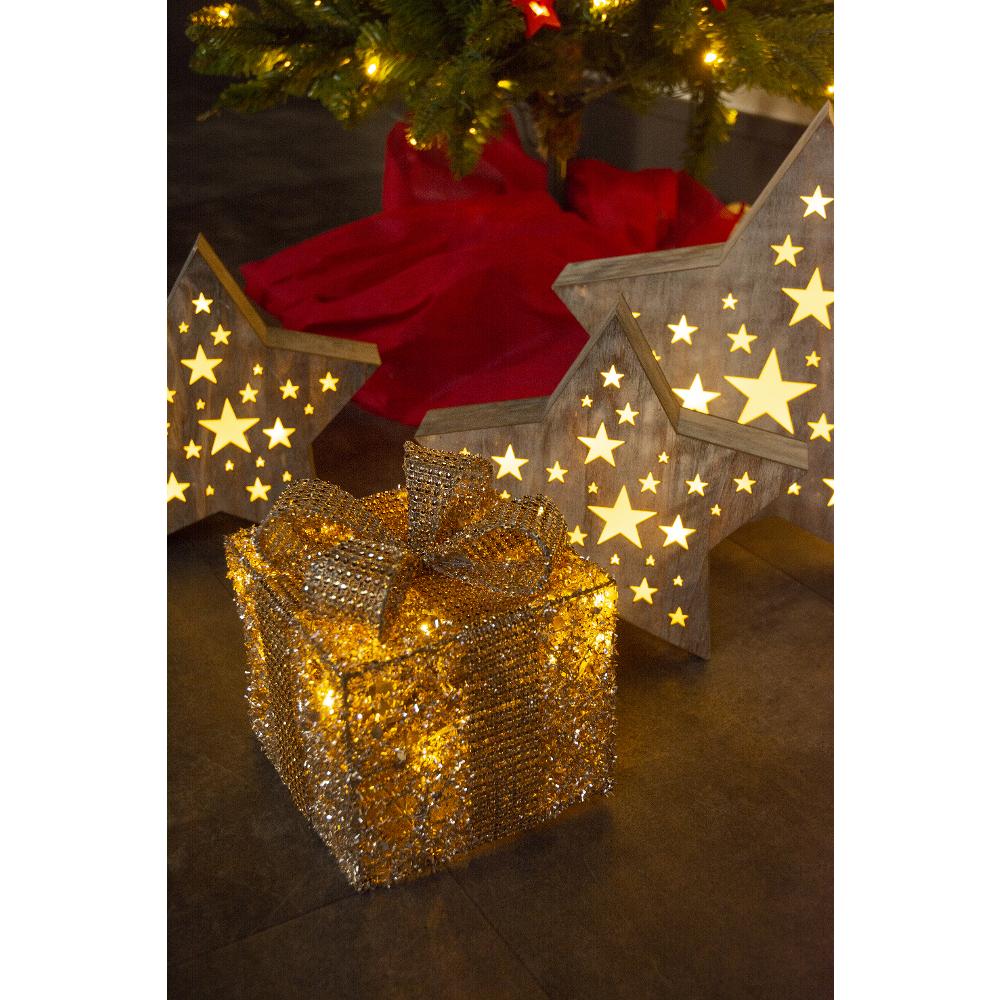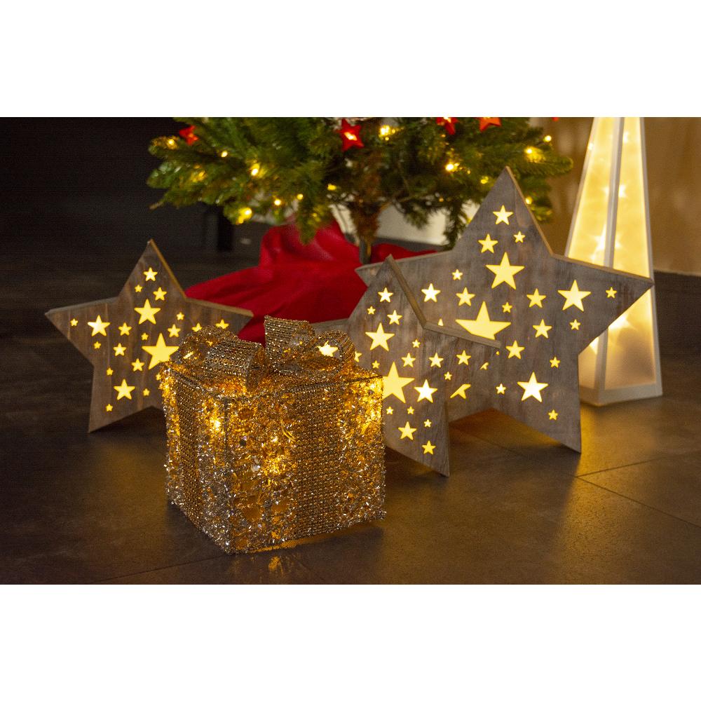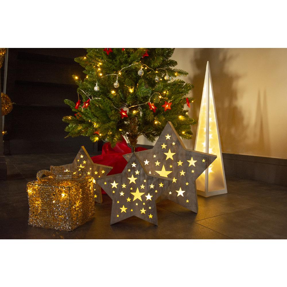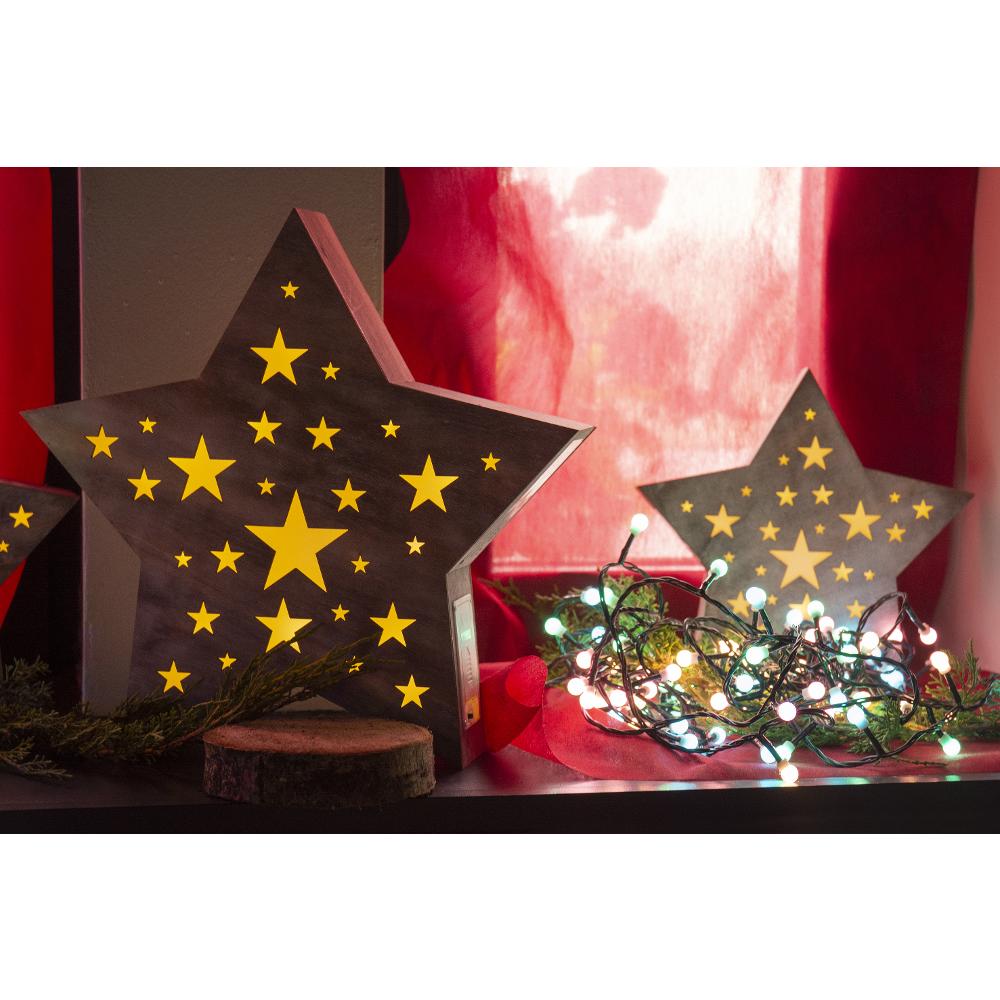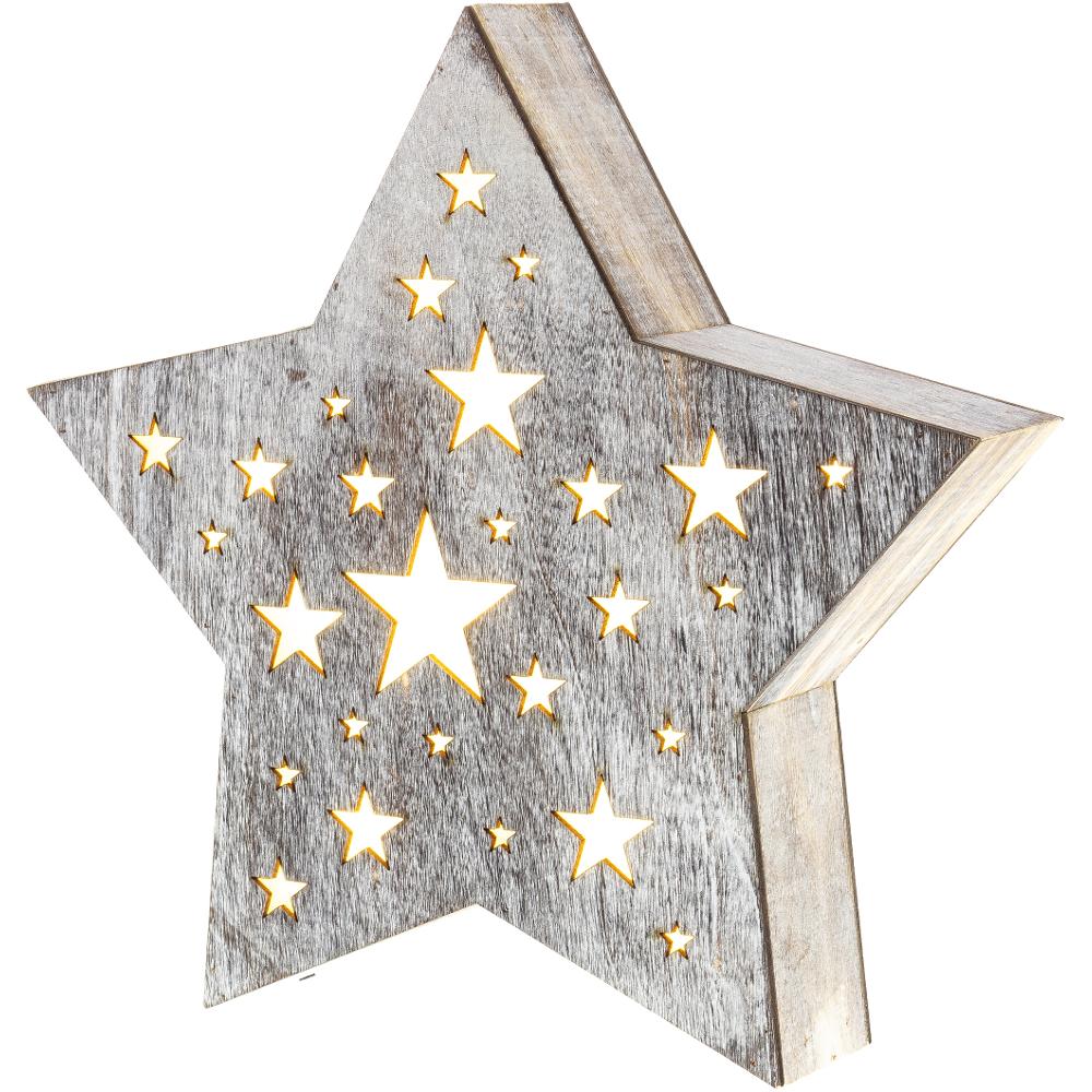 Vianočné dekorácie - hviezda drevená s perforáciou vo stvaru hviezdičiek