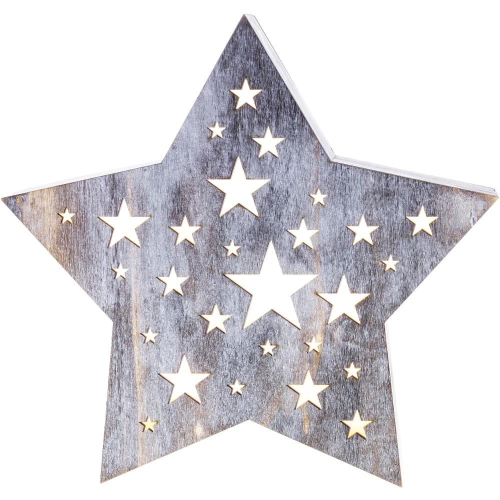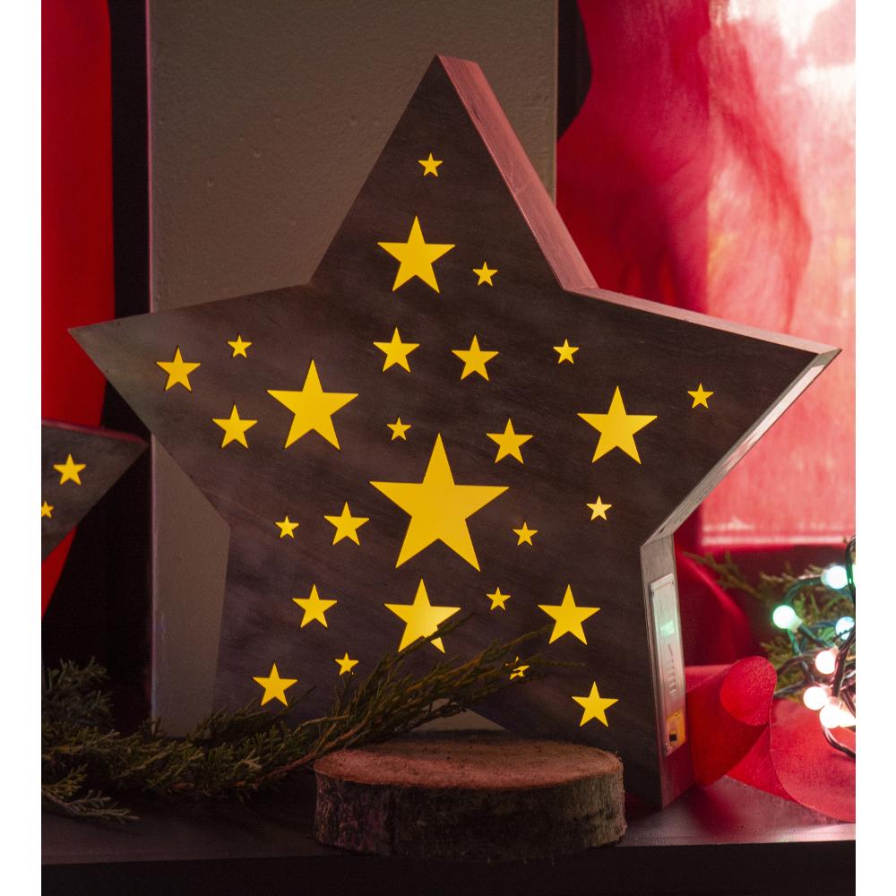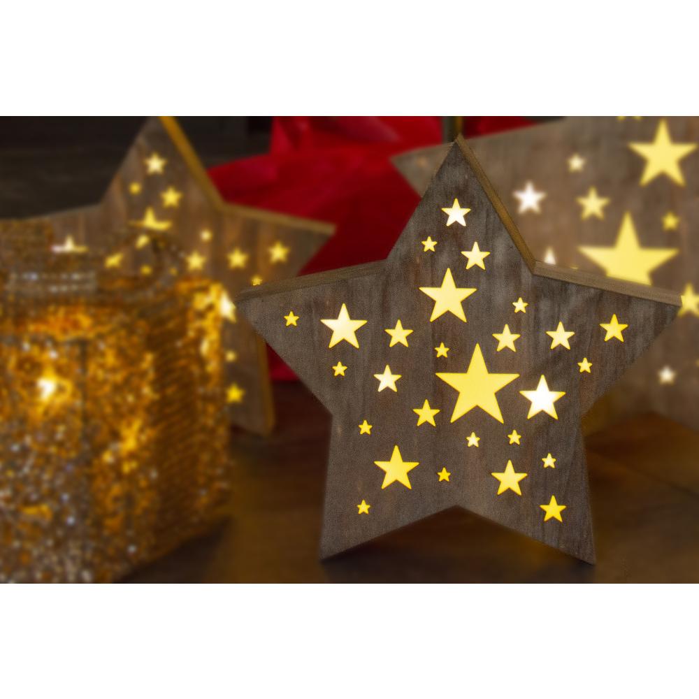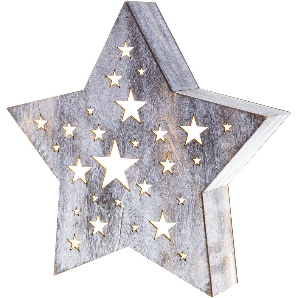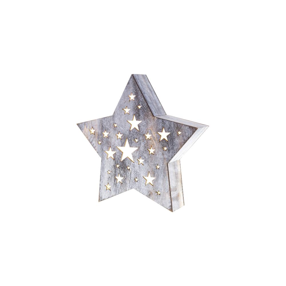 Vianočné dekorácie - hviezda drevená s perforáciou vo stvaru hviezdičiek