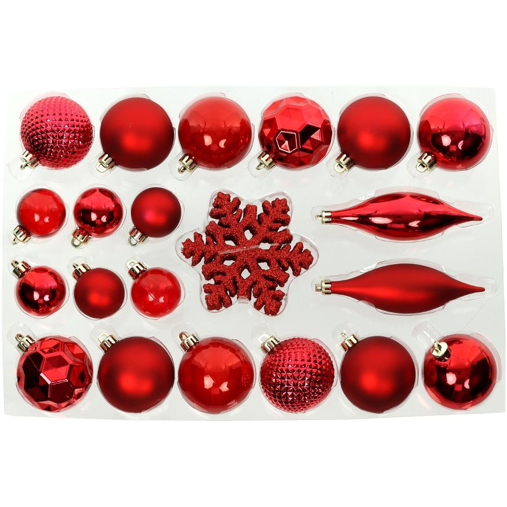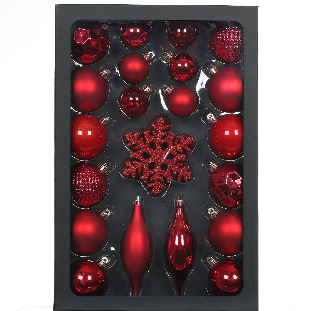 Sada 25 kusov vianočných ozdôb v tradičnej červenej alebo zlatej farbe