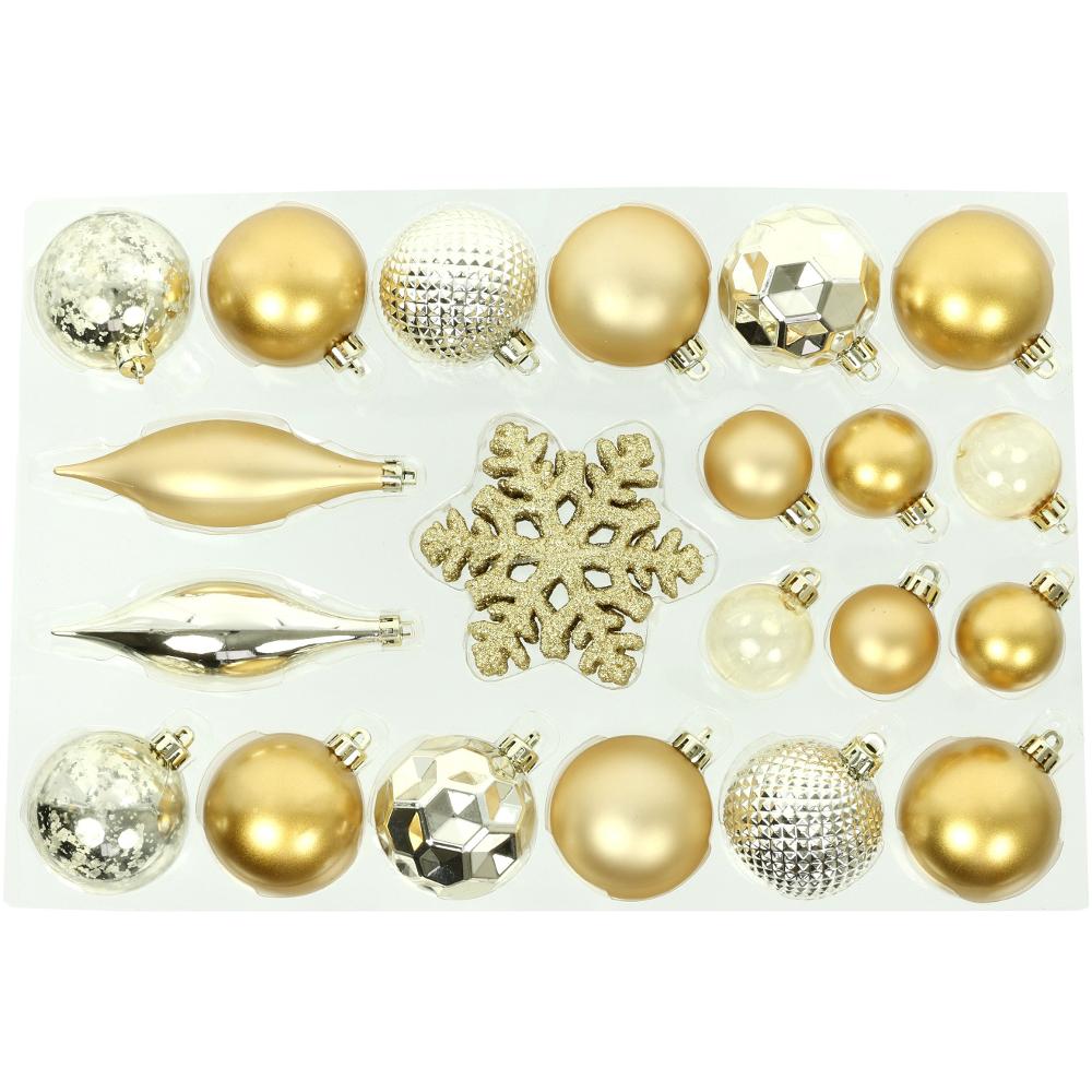 Sada 25 kusov vianočných ozdôb v tradičnej červenej alebo zlatej farbe