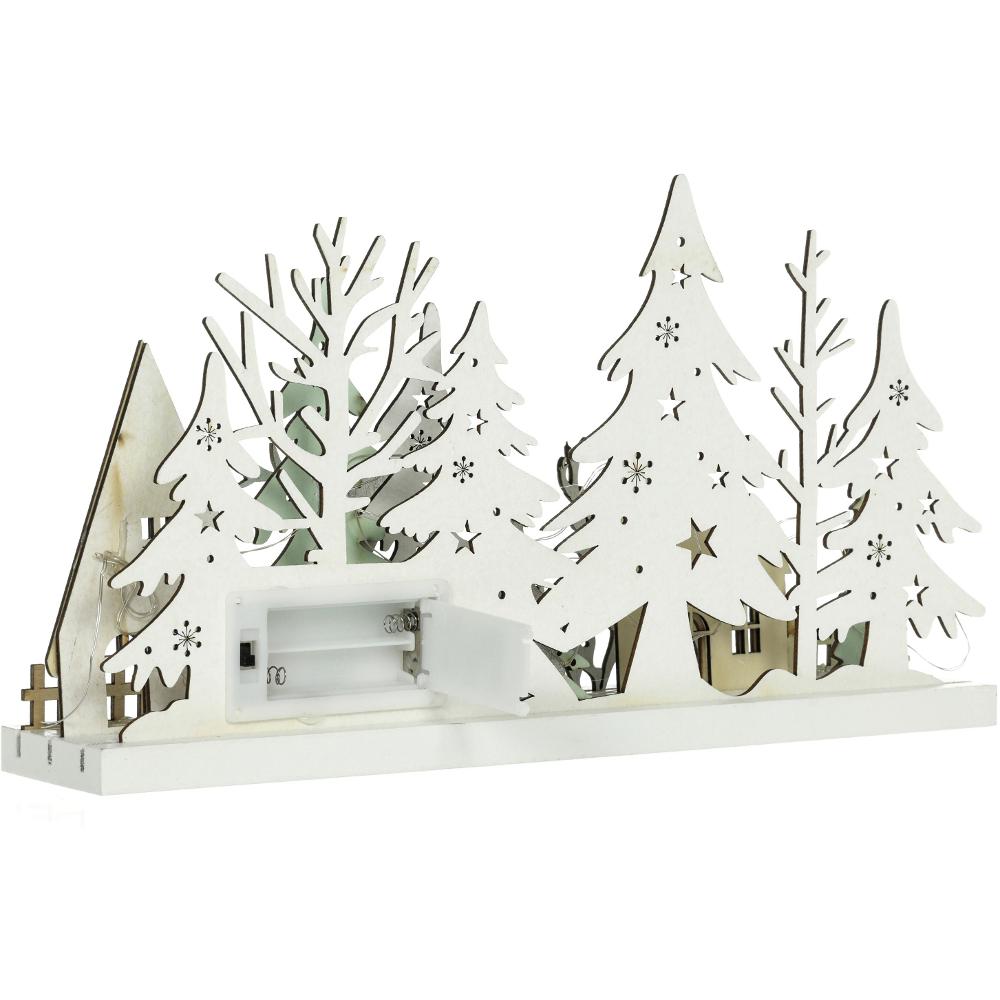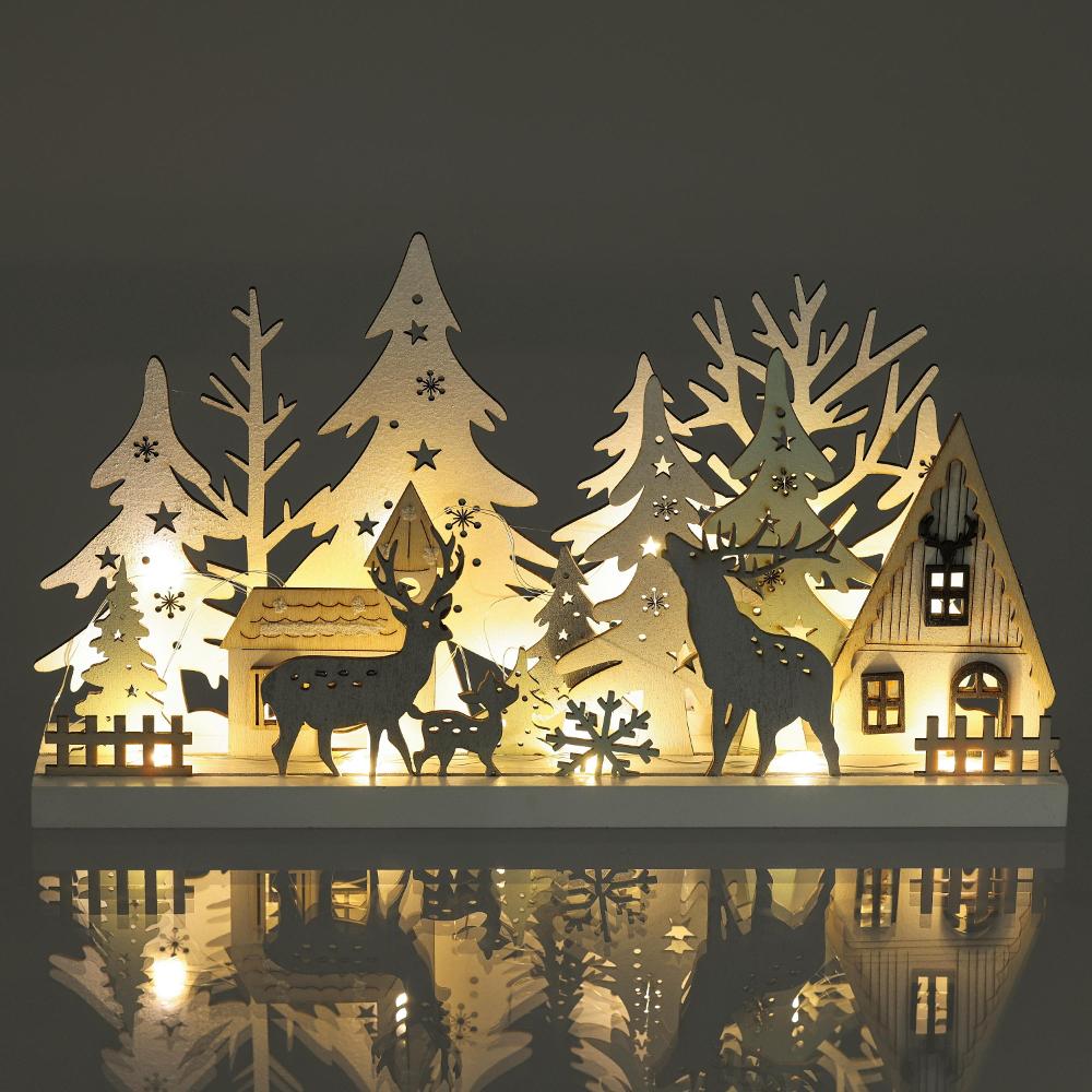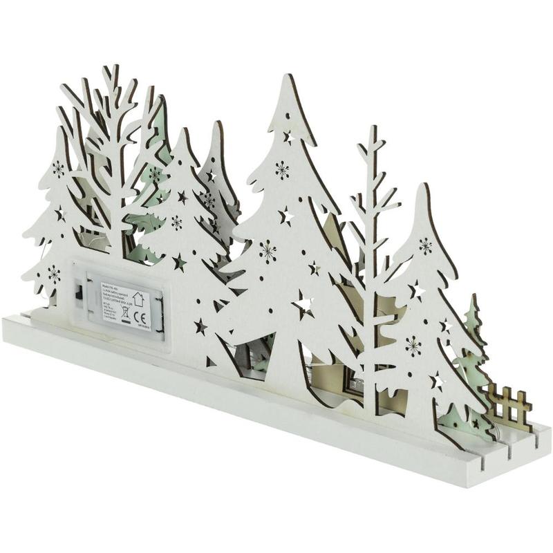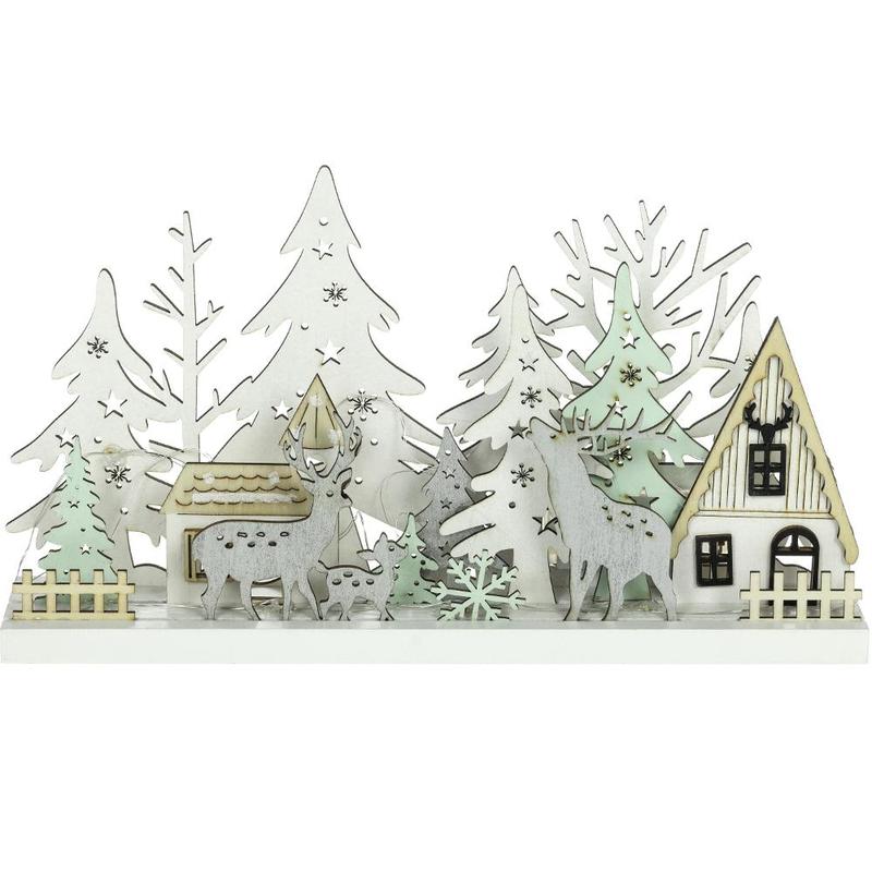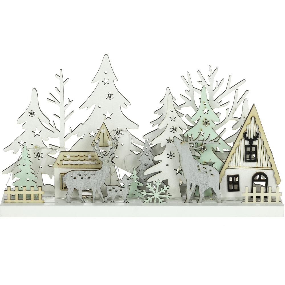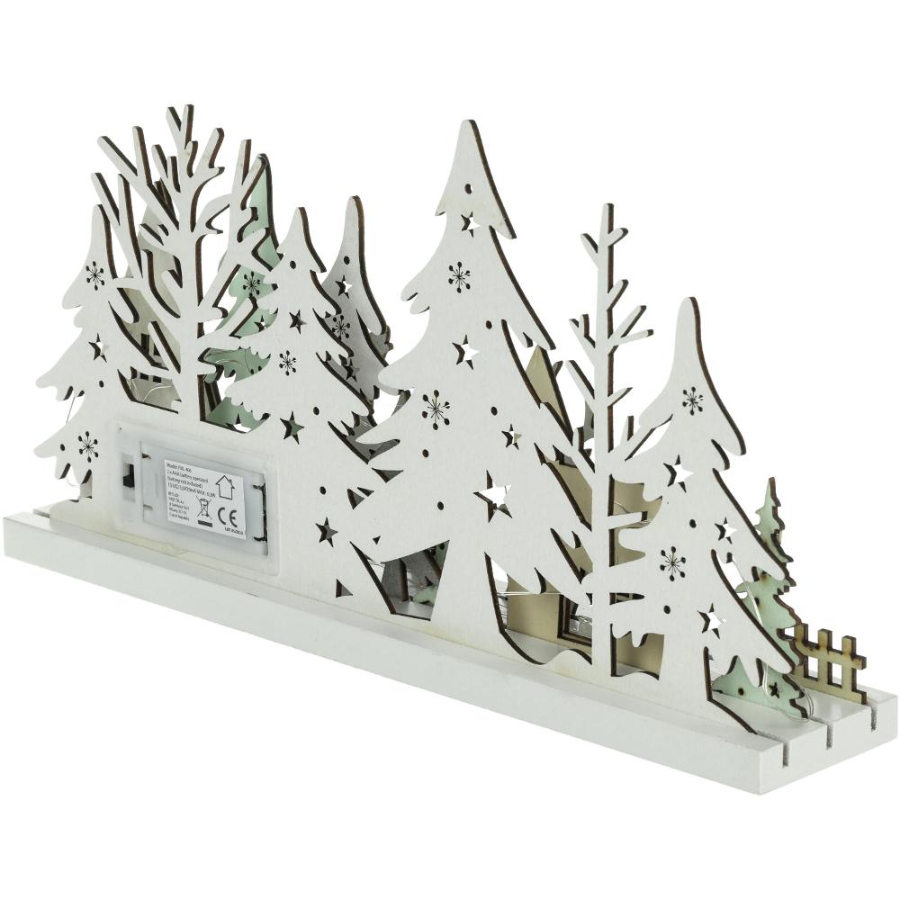 Drevená vianočná dekorácia v podobe zasneženého zimného lesa RXL 466 vnesie krásy prírody priamo do vašich obydlí. Jelene, srnky, stromy aj malebnú hájovňu si tak môžete užiť v dome aj byte. Osvietenie má na starosť 15 LED svetielok v príjemnej teplej bielej farbe. Vďaka rozmerom 33 × 5,8 × 16,5 cm nájde jednoduché umiestnenie, pričom sa stane neprehliadnuteľným doplnkom.
