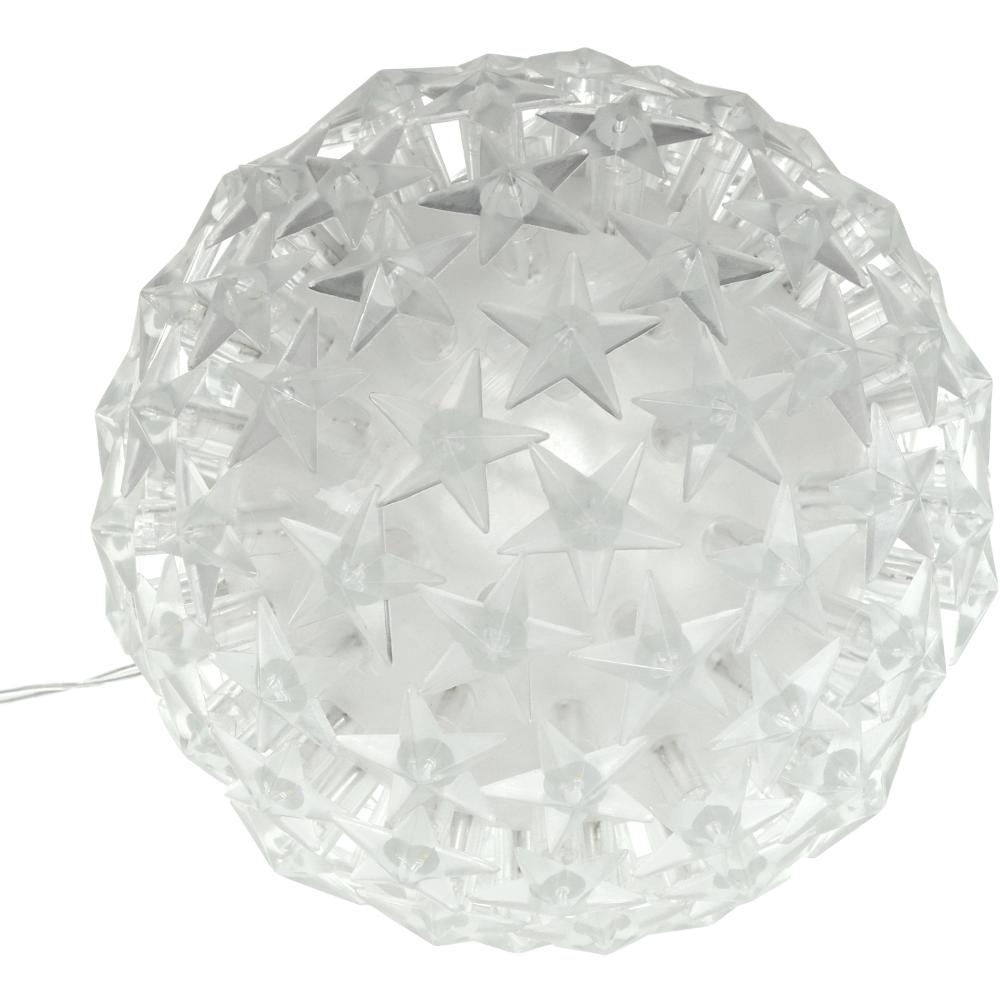 Guľa zložená z malých hviezd doplnená 100 LED svetlami v teplej bielej farbe. Priemer 15 cm. Závesná rukoväť. 5 metrov napájací kábel v priehľadnej farbe. Časovač. Používajte iba v interiéri.