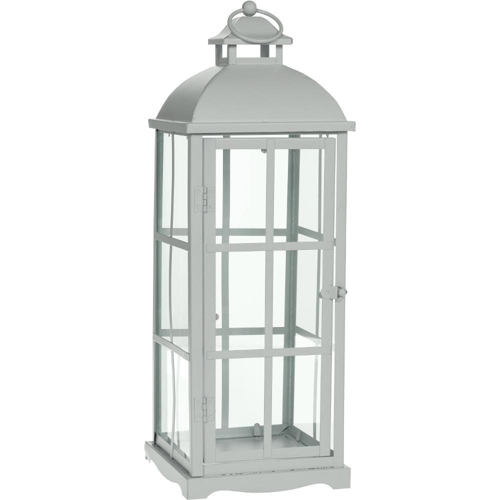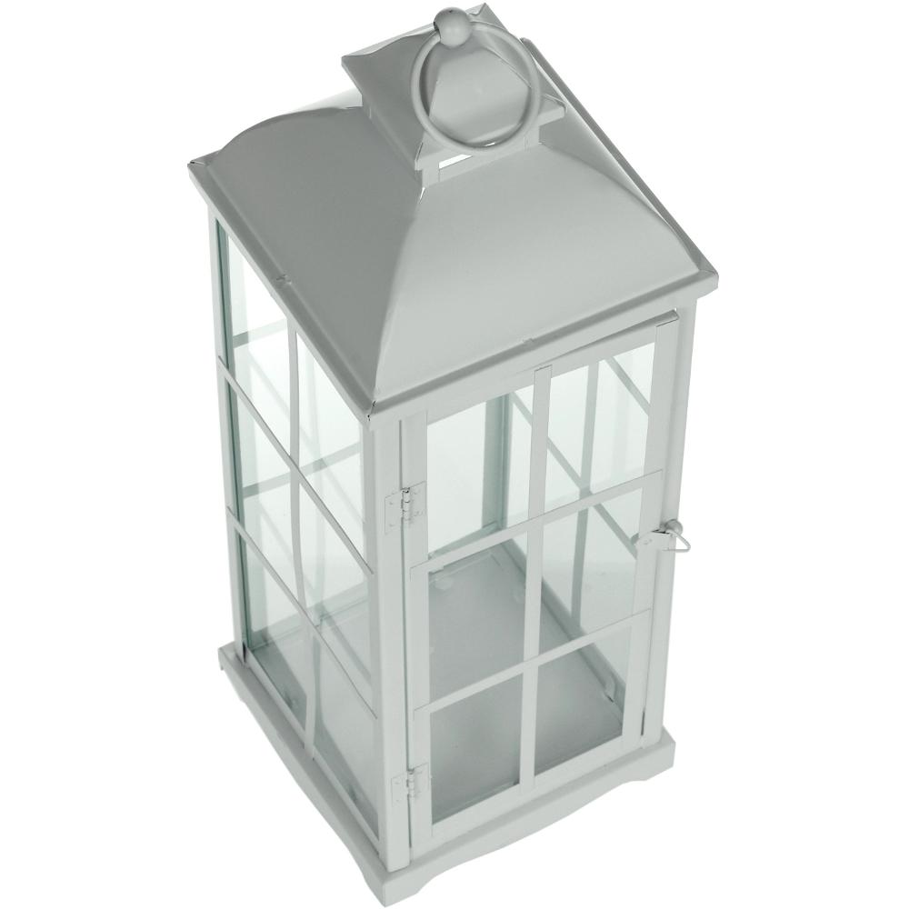 Kovovú bielu lampu so sklenenými oknami je možné použiť na klasické aj LED sviečky. Rozmery 12,5 x 12,5 x 36,5 cm. Na vnútorné a vonkajšie použitie.