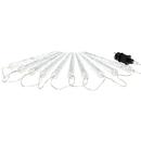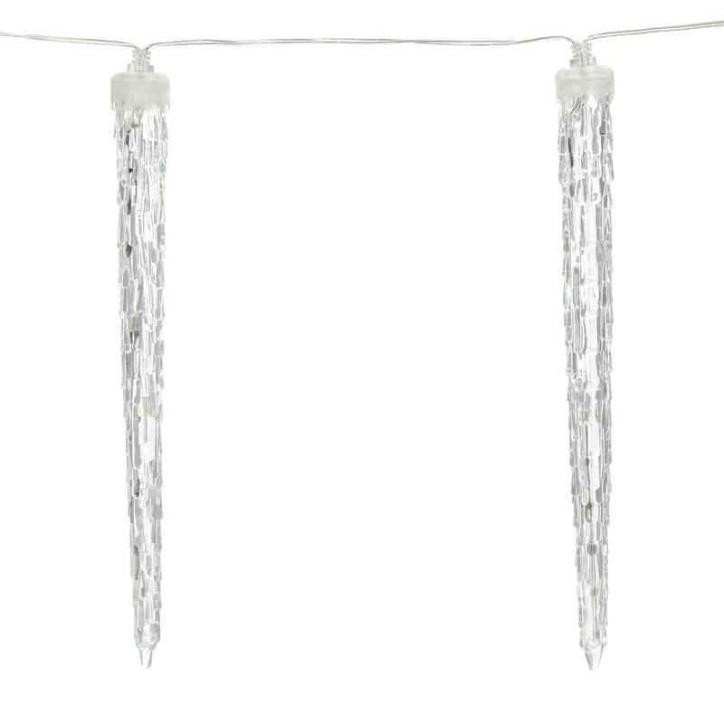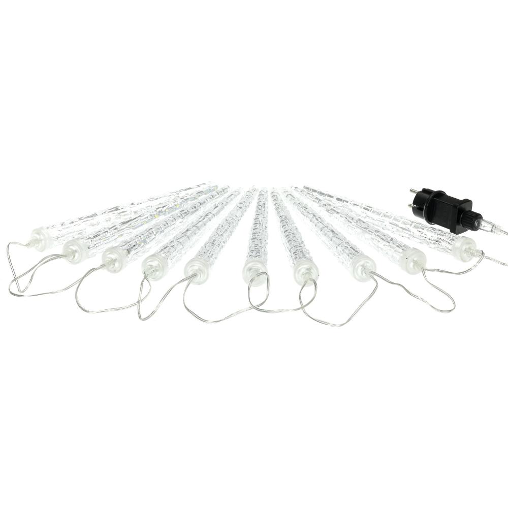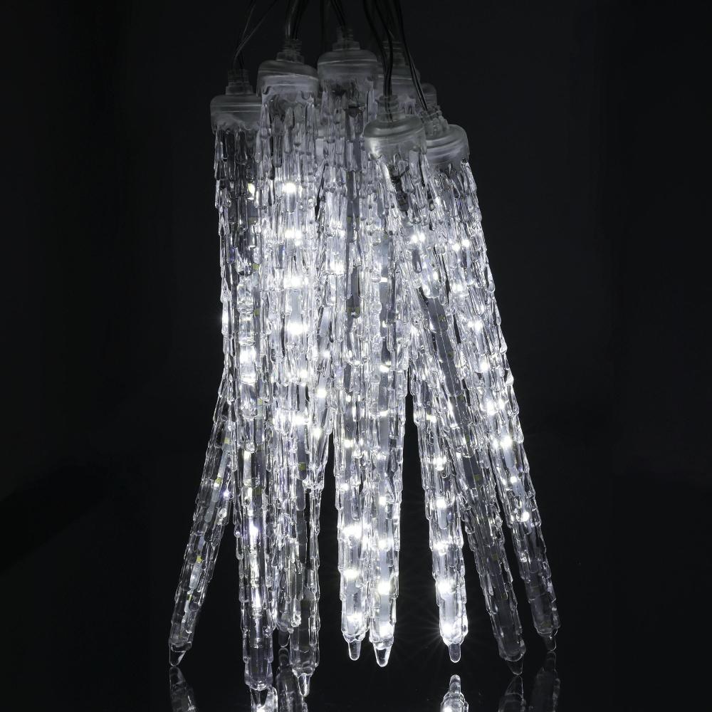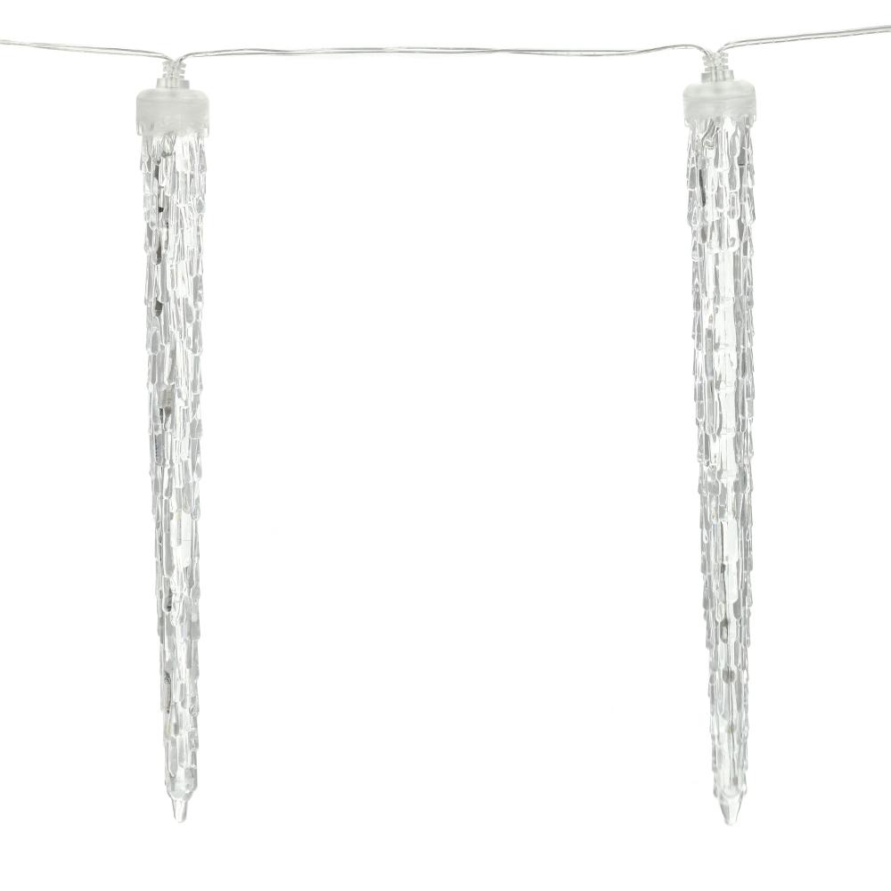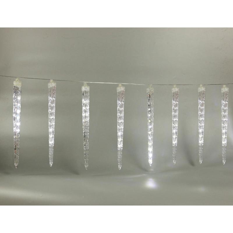 10 akrylových cencúľov dlhých 28 cm s 22 LED svetlami v studenej bielej farbe. Dĺžka osvetlenej časti 1,8 m + 5 metrov napájací kábel v priehľadnej farbe. Môže byť použitý v interiéri aj exteriéri.