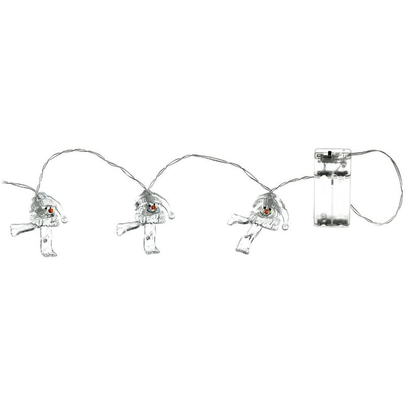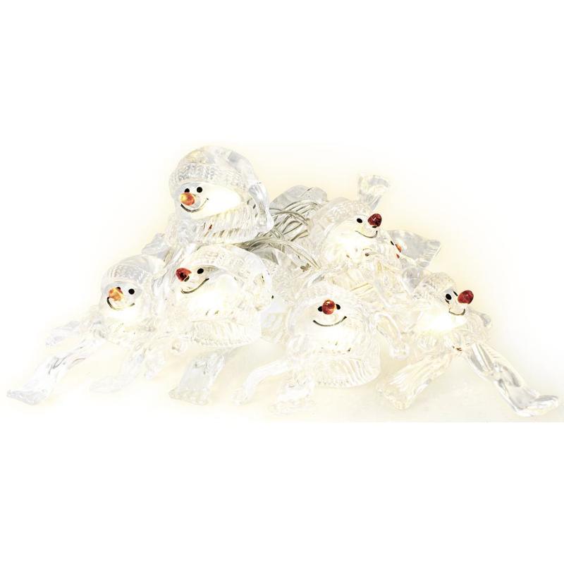 Osvetlenie girlanda so snehuliakmi, materiál snehuliaka: akryl, počet ľad: 10, farba svetla: teplá biela, napájanie: 2xAA, dĺžka kábla: 1,35 m, IP20 iba pre vnútorné použitie