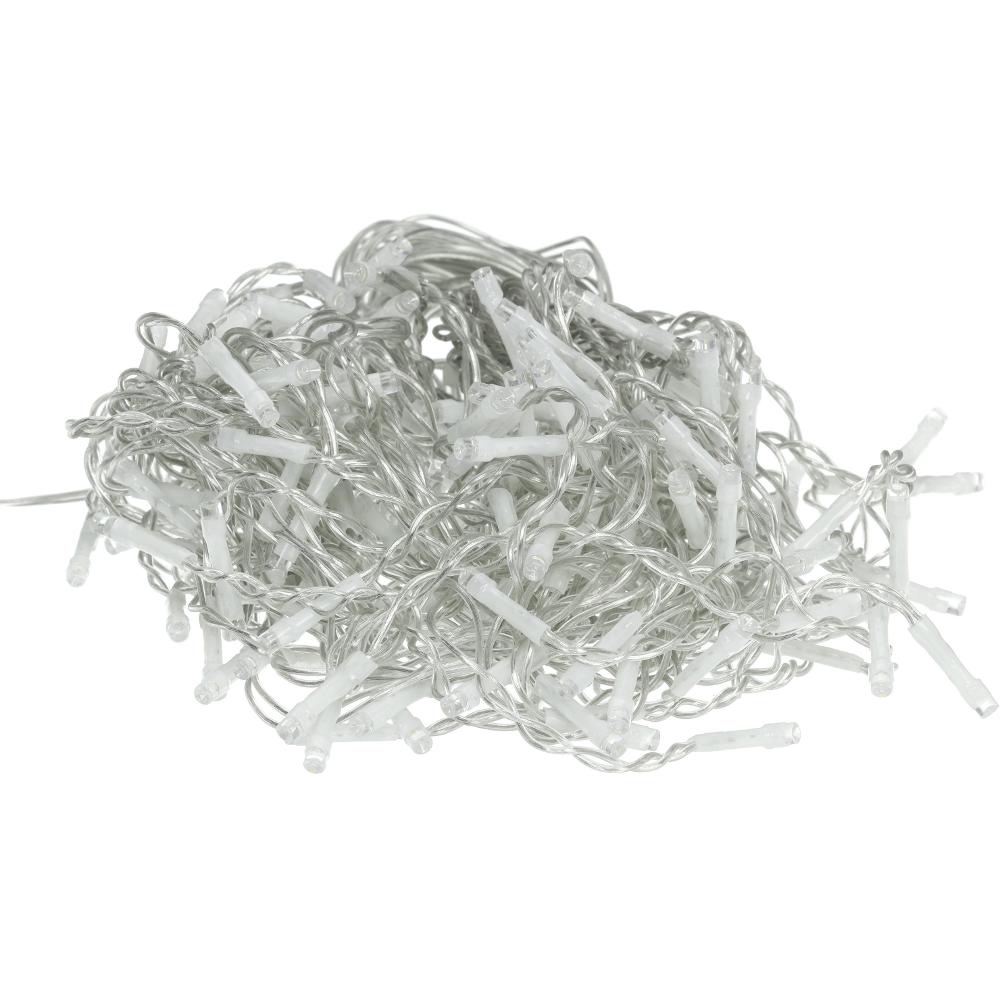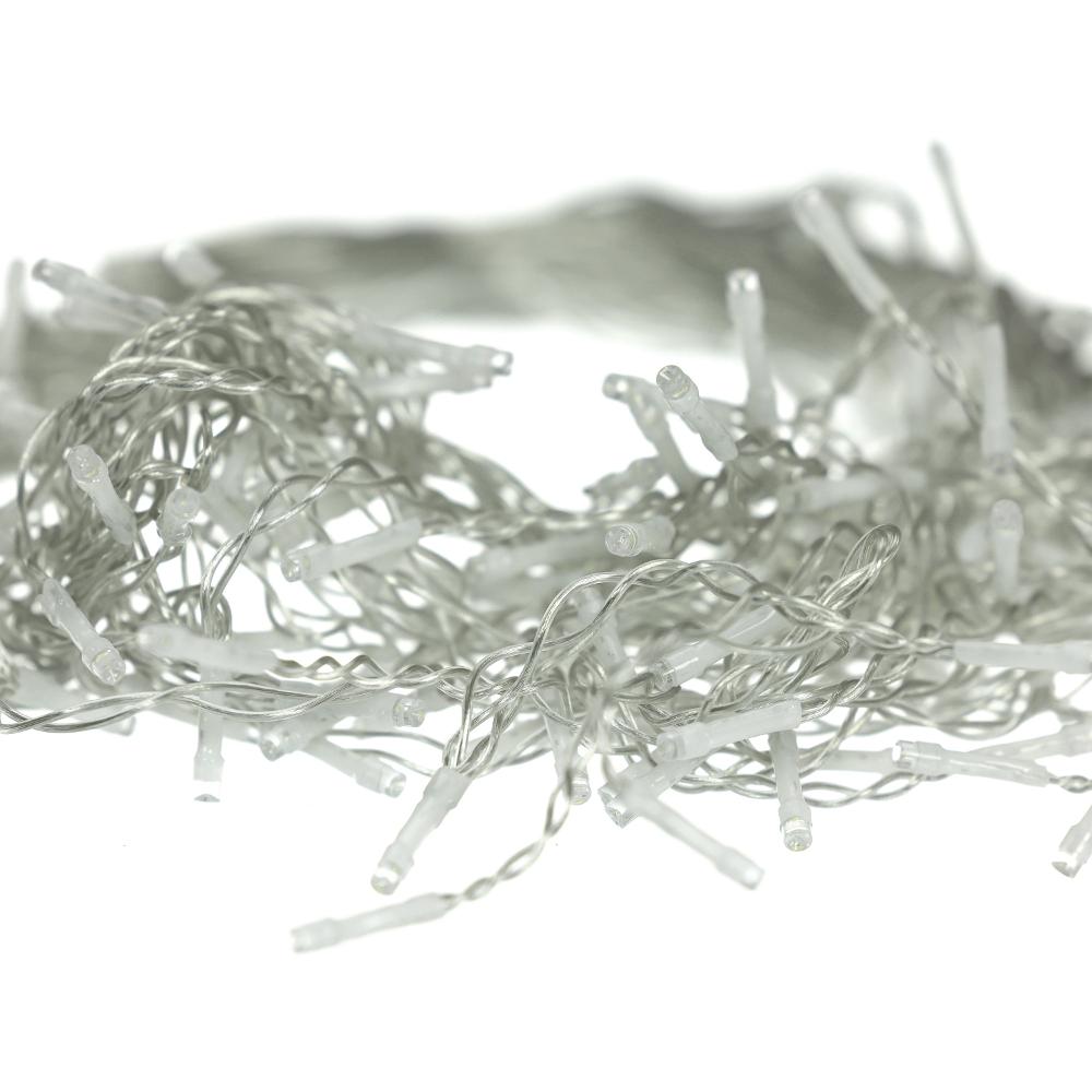 Svetelná záclona 40 m osvetlená časť, 7,5 m prívodný kábel. 1250 LED studenej bielej farby. Časovač.