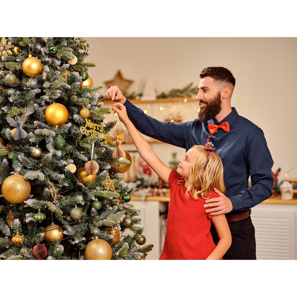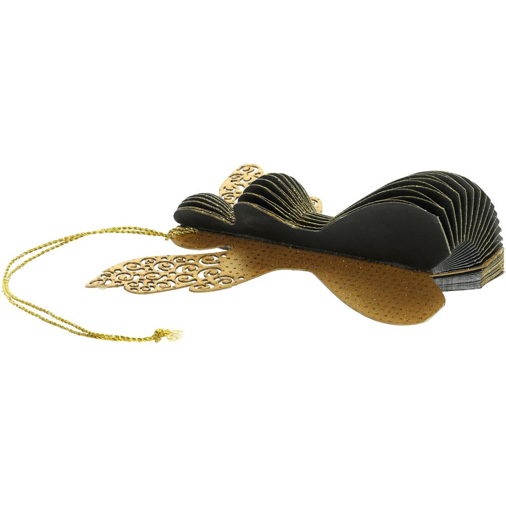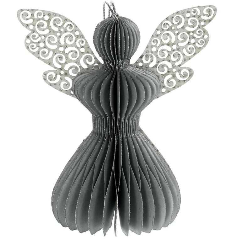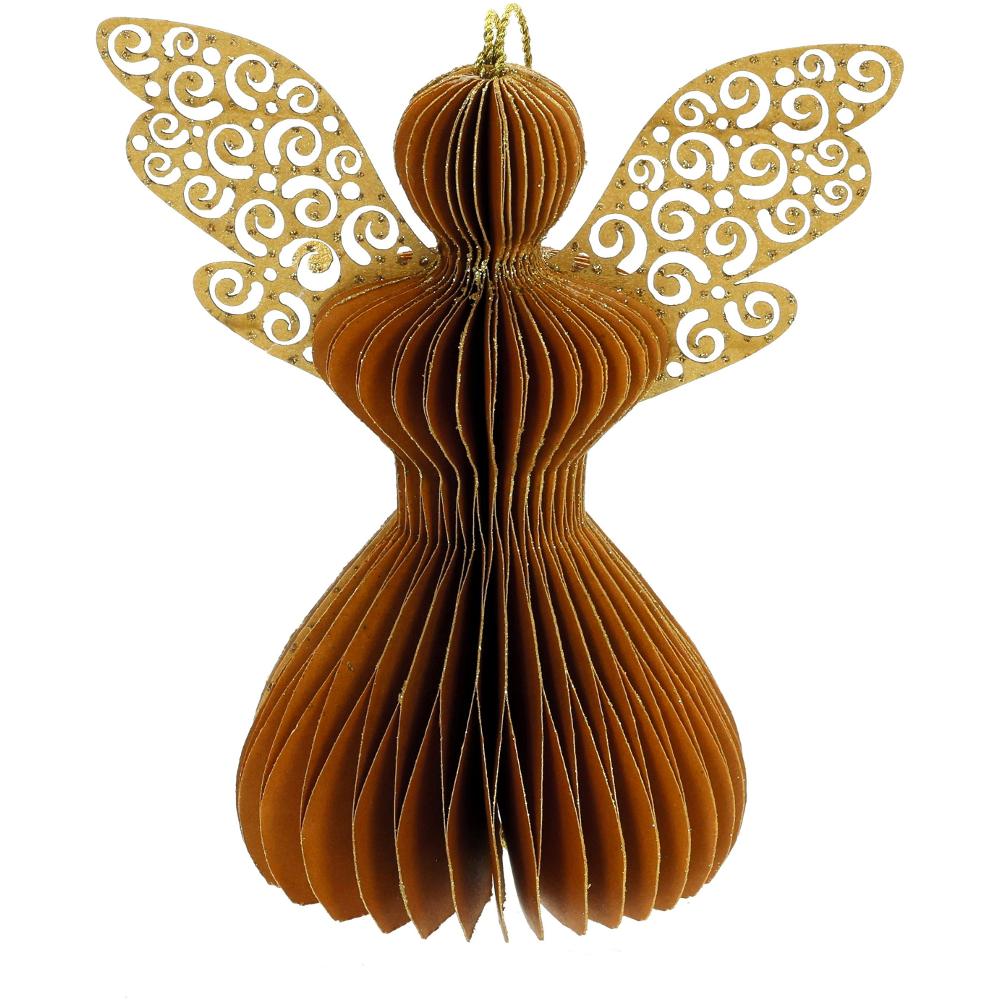4 krásne papierové ozdoby v tvare anjelov. Skladané ornamenty majú tvar plástu so zlatými trblietkami na okrajoch. Sada obsahuje dekorácie v štyroch farbách: čierna, ružové zlato, horčica a striebro. Používajte iba v interiéri.
