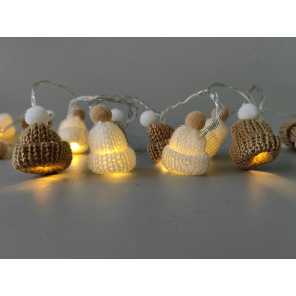 Vianočné reťazové svetielka vo forme pletených čiapok