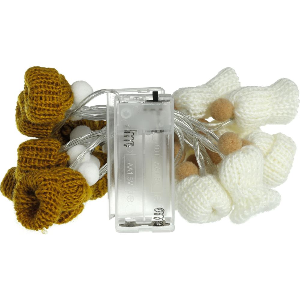 Na svietiacej girlande je umiestnených 20 pletených čiapok v prírodných farbách, ktoré sa po zapnutí rozsvietia teplou bielou farbou a dokonale doplnia pohodu vášho domova. Girlanda je určená na vnútorné použitie a ideálna je napríklad na parapet alebo poličku.