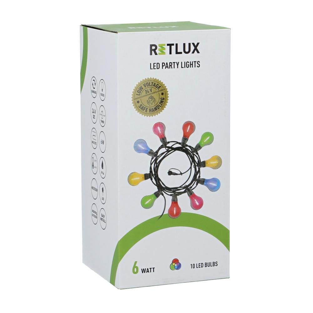 Som nová párty reťaz Retlux, která rozjasní každú párty. Správnu atmosféru dokážem vytvorit jednoduchým rozsvietením. Som k dispozici rovnou v dvoch farebných variantách, z ktorých je na výber medzi farebnou kombináciou a čisto bielou variantou. Disponujem ochranou IP44, takže pre mna nieje problém pobyt vonku. Všetko vydržím.