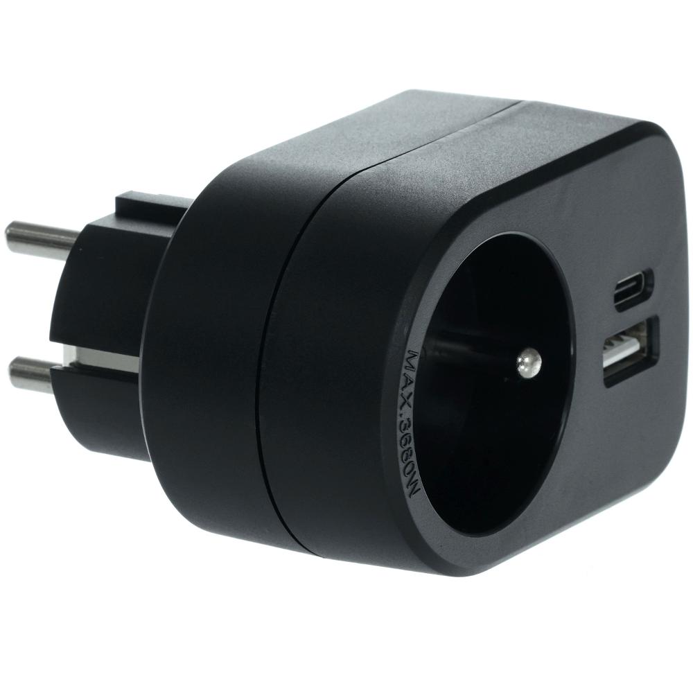 Zásuvka + 2x USB, 16 A/250 V - 50MHz Max. 3680 W, USB výstup DC 5V max. 2,1 A