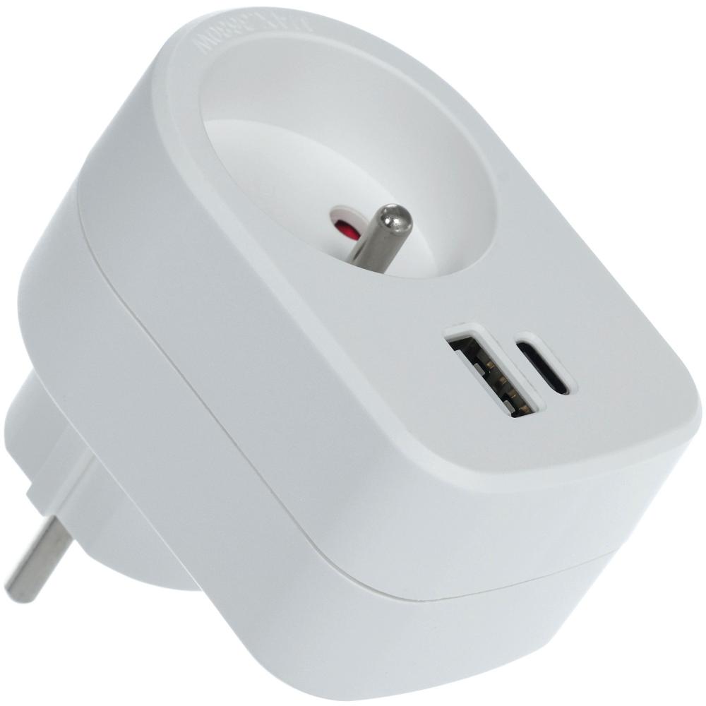 Zásuvka + 2x USB, 16 A/250 V, 50 MHz/max. 3680 W, USB výstup DC 5 V/max. 2,1 A