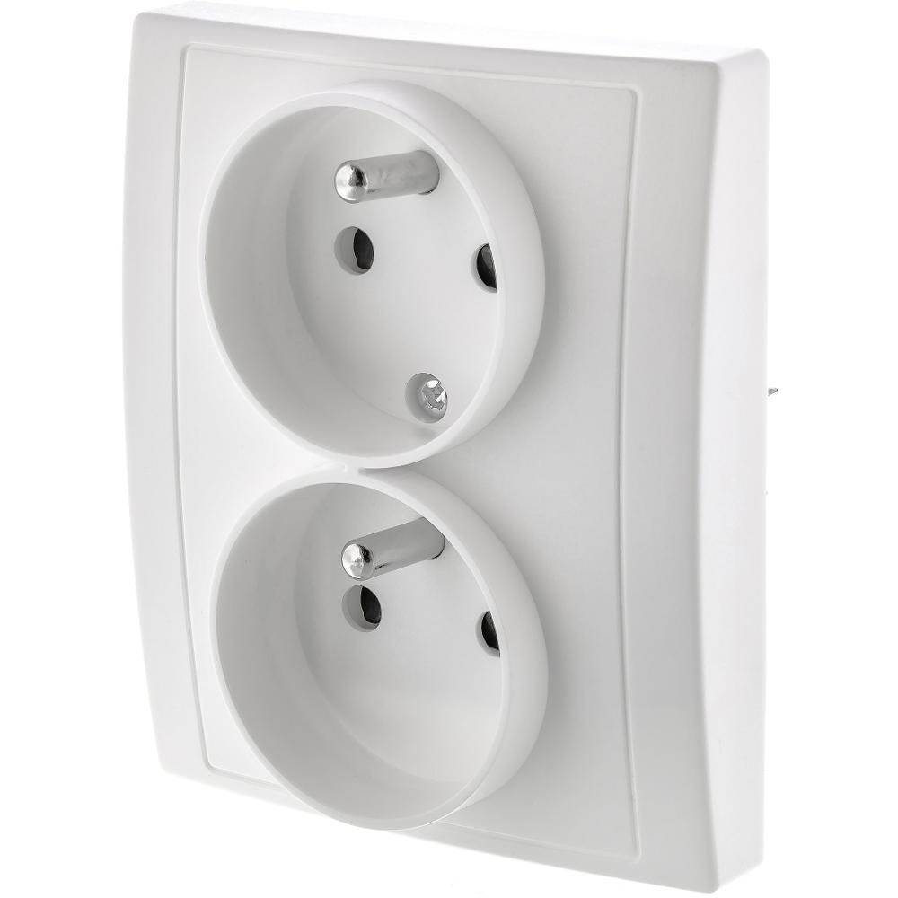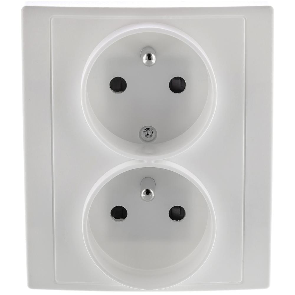 Dvojzásuvka rady AMY s rámčekom a ochrannými kolíkmi, biela farba